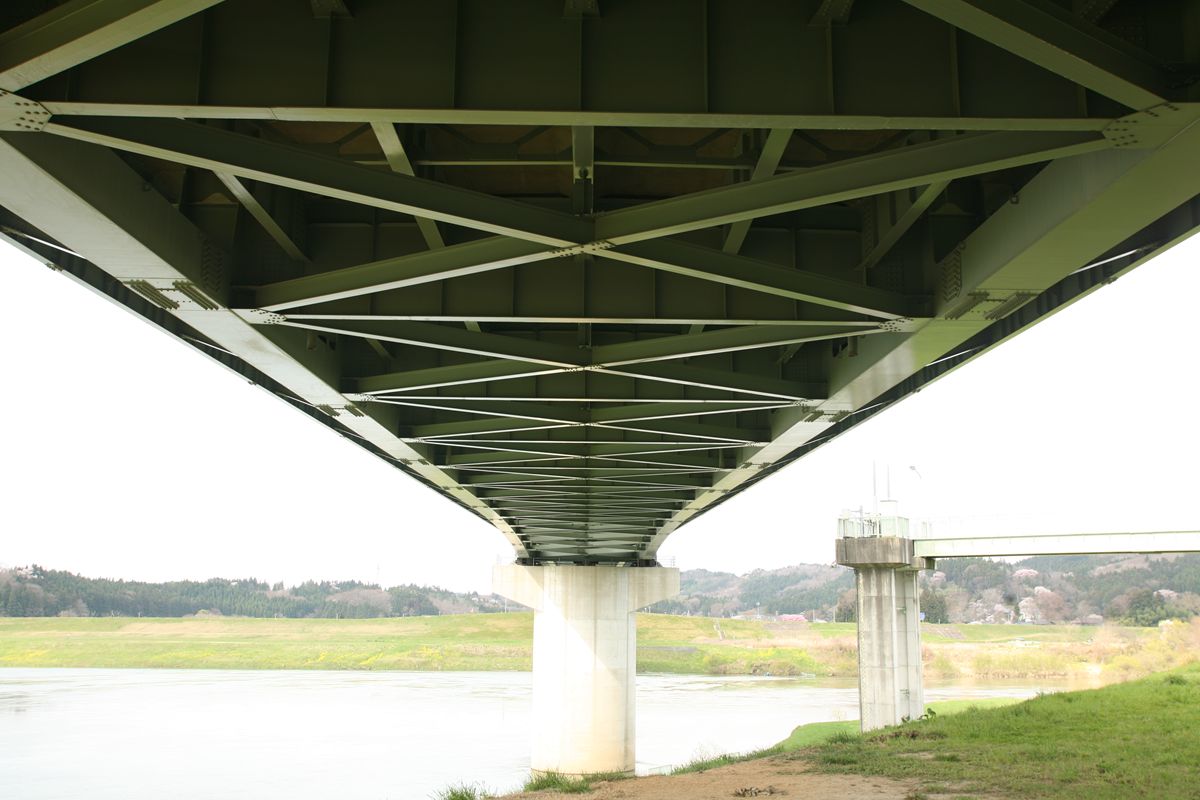明治時 代に製作された鉄道トラス橋の歴史と現状(第4報)米国系トラス桁その1(小西純一、西野保行、淵上龍雄、1988)によれば、250フィートの単線ペンシルベニアトラスだった。そのスケルトンもリンク先にある。支間253フィート5と1/2インチ(77.254m)、格間18フィート1と1/4インチ(5.518m)、高さ41フィート11と31/32インチ(12.801m)という巨大な鉄の塊である。1898年
