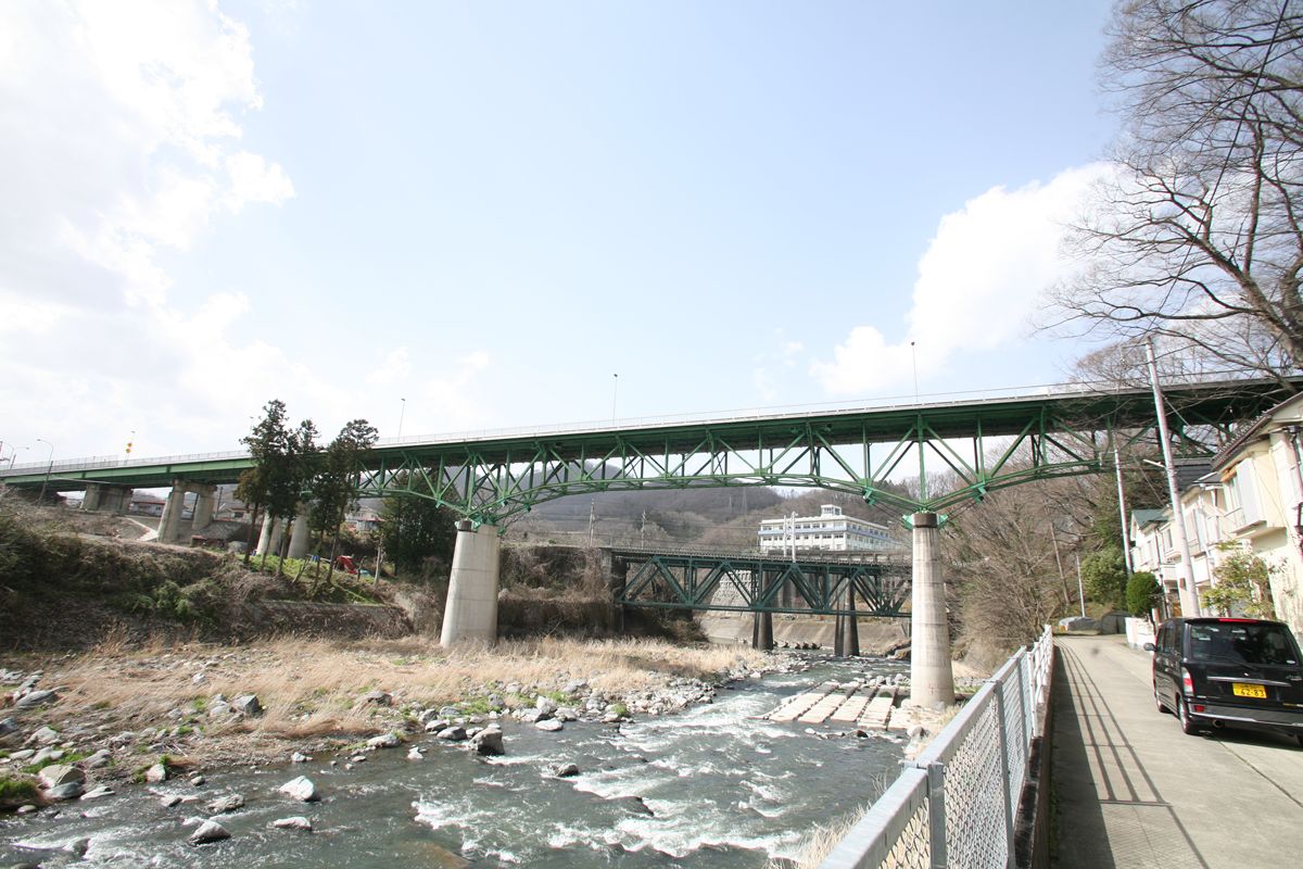 JR中央本線の車窓からも見える、R20大月橋。この橋の知見はなかった(歴史的鋼橋集覧で見ていた程度)だが、先日、車窓を漫然と見ていたら大月橋(と梁川橋)が目に入り、改めて行ってみた。