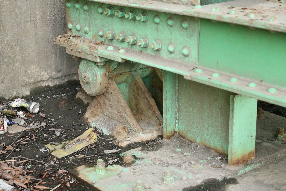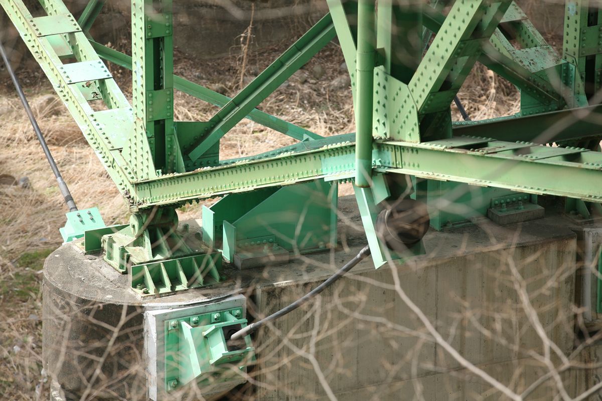 ピン付近の塗装が剥げたように見えるのは、支承が支承の役割を果たしているからか。