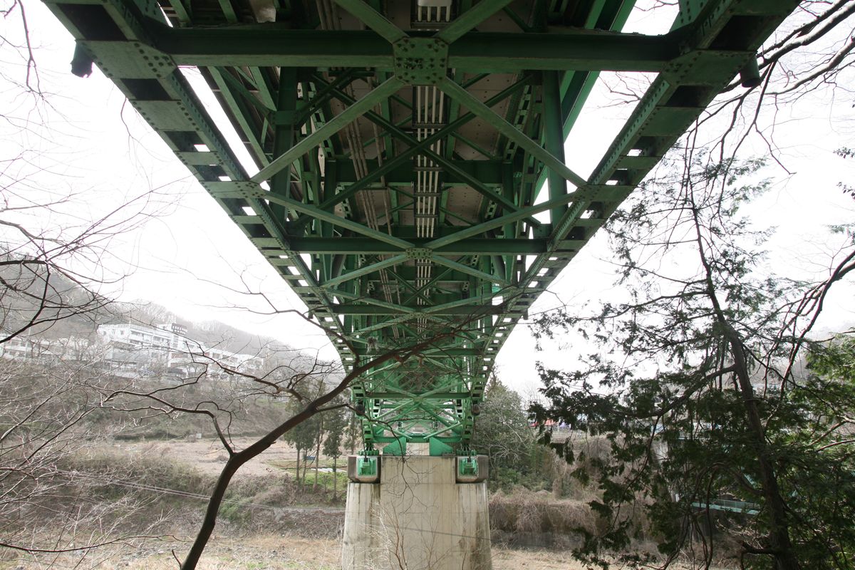 手前の木が邪魔をして、撮影しづらい。枝が葉をつけたら、もっと見えなくなるだろう。また、奥の鈑桁まで見通せないのも感じていただけるだろう。