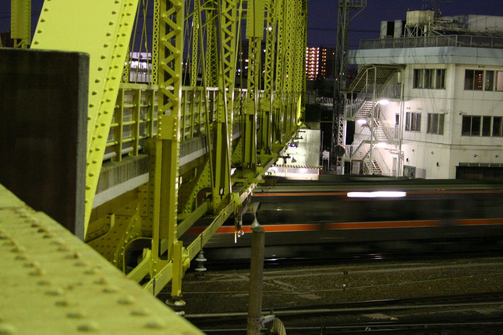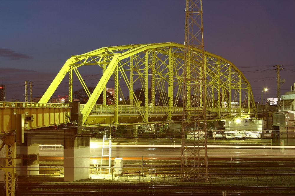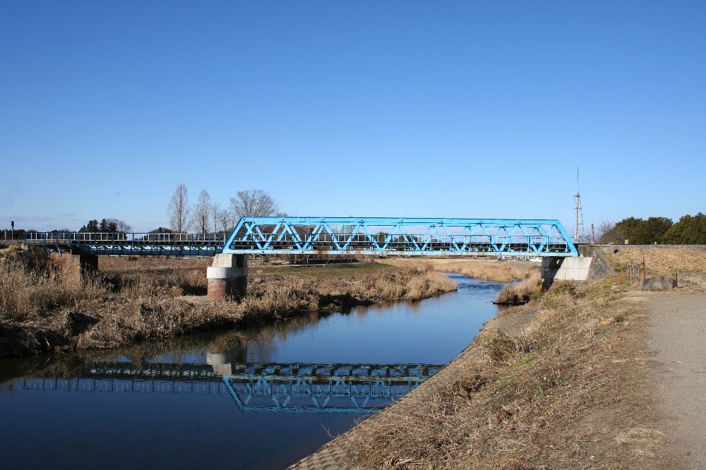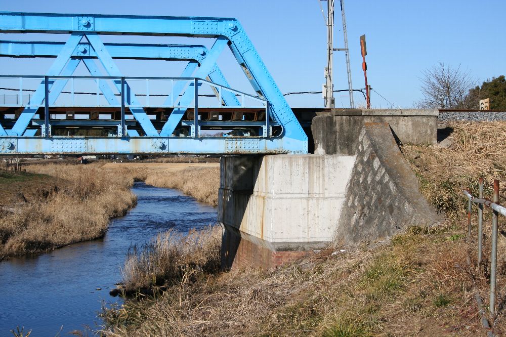 もちろん手前の大きな橋が新線。下り基準で微妙に左カーブしている。架線柱は通常50m間隔、ということはスパンはそれ以上なので60~70m程度か。その向こうに見える立場川橋梁は200フィート、62mである。