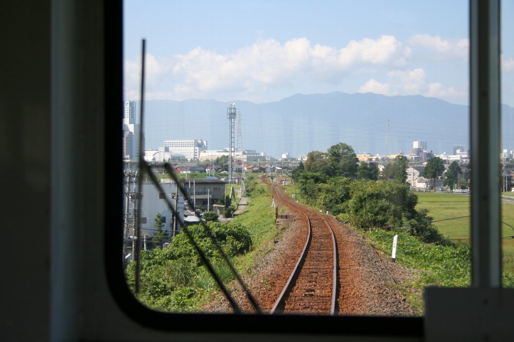 新線の「下」に見えているのは八ヶ岳である。左の白いのは阿弥陀岳、その右の黒い三角が西岳である。