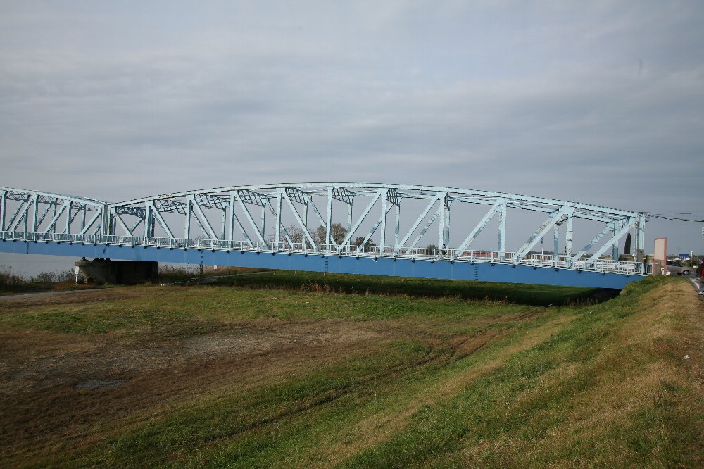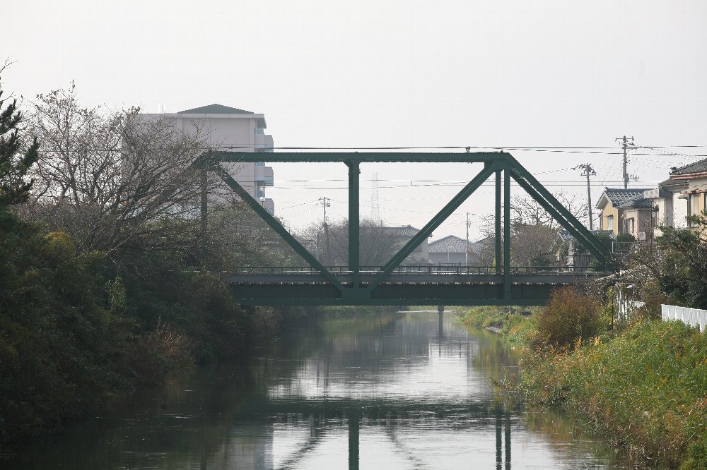 その下(南)に並行して架かっていて、しかも両端とも途切れているのは旧橋であろう。