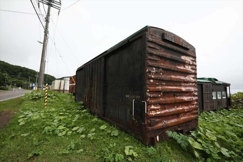 (同日追記)@g_standさんから「右側のは別の給油所ではないか」とご指摘をいただいた。改めて写真を見返した。 PR 正面中央、三枚の扉がある…ように見えるが、これはフェイクである。いわば、はめ殺した扉。蝶番もドアノブも見当たらない。 惜しいのは、真正面に電柱があることだ。意匠を凝らした建物ならばこうした電柱の立て方には断固抗議すべしと思うが、この局舎を「意匠を凝らした」などと評価するのはごく一部のみか。 (参考画像) この終端、相泊橋の横にワム60000(丸屋根と雨樋から推測)がある。貨車が倉庫として大量に売り出された国鉄末期、もっとも近いと思われる根室標津駅からでも直線距離で約60km。よくこんなところまで持ってきたものだ。 漁具の倉庫として使われているようだ。 東経145度19分付近。根室本線で言えば初田牛駅付近。もしかしたら、日本最東端の廃車体かもしれない。 * * *