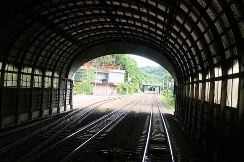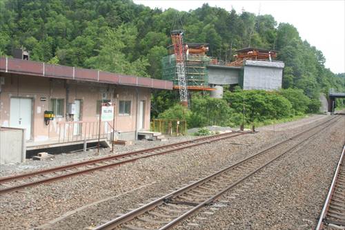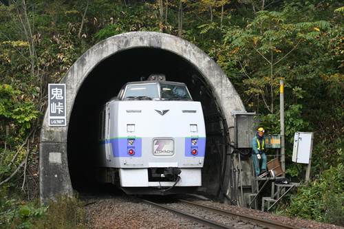 占冠はおもしろい場所で、ほぼ石狩川・空知川水系である上川総合振興局(上川支庁、といったほうが馴染みがあるかもしれない)にもかかわらず、この占冠村だけは鵡川水系で、村内を流れる川をたどると太平洋に出る。しかし、この村への道は鵡川を遡るのではなく、空知川水系である富良野盆地から山を越えて入ってこなければならなかった。鬼峠は、占冠の西、ニニウに至るために越える、さらにもうひとつの峠である。 (Kashmir3D+数値地図20万分の1+50mメッシュ標高データを使用) この部分、トンネルの幅が右側(南側)に広い。保線の方にうかがった話では、ここに休憩所があるという。鬼峠トンネルの点検は、歩いて往復8時間とのことだ。 * * *