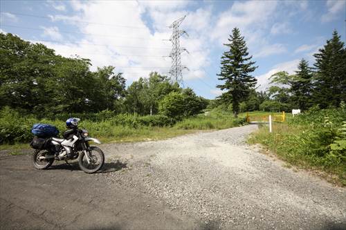 さて、ここで3時代の地図を見比べよう。まずは大正8年測図のものに、3時代分のルートを重ねてみる。 当時、鵡川沿いの赤岩青巌峡付近に道はない。中央から尾根に取りつき、そのまま峠を越えてニニウ側の尾根をつづら折りに降りてくる。ニニウには30戸近くの家屋が描かれている。 次いで昭和33年測量のもの。 中央側の入口は北にずれ、かつての道を重ねると、谷筋を登るように地形が描き直された(かつての道はこの地図には載っていない)。送電線の点検に適するかのような位置に道がつけられている。ニニウ側は少し遠回り、ペンケニニウ川の上流に下っている。興味深いのは、その位置に家屋が描かれていることだ。また、学校も描かれている(別稿)。また、中央から赤岩までの道も開削されている。 この、二代目の道がペンケニニウ川のところに降りる部分は、現在このようになっている。 なお、ペンケニニウ川に沿う道は、この少し先(北)でゲートで塞がれている。 以前はこれより先に行くこともできた。 ●1999年 道道夕張新得線(道道136号) そして現在(平成3年修正)。 (クリックするとFlickrの大きな画像を表示します) 昭和33年測量のものと中央側の描き方が違うが、おそらく地形図にありがちな「いまのほうがより正確に描き直されただけ」だと推測する。抜本的改良がされるとは思えないこのような道が、全面的に、旧道のすぐ近くで微妙に線形を変えながら作られるとは思えないからだ。よって、実際は、鬼峠までの道は昭和33年測量のものと変わりがなかったものと考える。 ただし、道は鬼峠からニニウに向かうのではなく、いきなり南下して、赤岩青巌峡の北に降りてきてしまっている。この途中で、大正8年の図にある初代鬼峠と交差するはずだ。この頃になると、赤岩からニニウ、そして穂別への道が開通しているので、もはや鬼峠越えは本来の用途…中央とニニウを結ぶ道としての役割は終えていただろう。いまバイクやクルマで走れるのは、この道の、峠付近より東側である。峠より南は、冒頭の通りゲートがある。 (続く) 鬼峠・ニニウ・占冠のこと(1) 鬼峠・ニニウ・占冠のこと(3) 新入小学校と『シリーズ北海道の女』(宮内令子著)