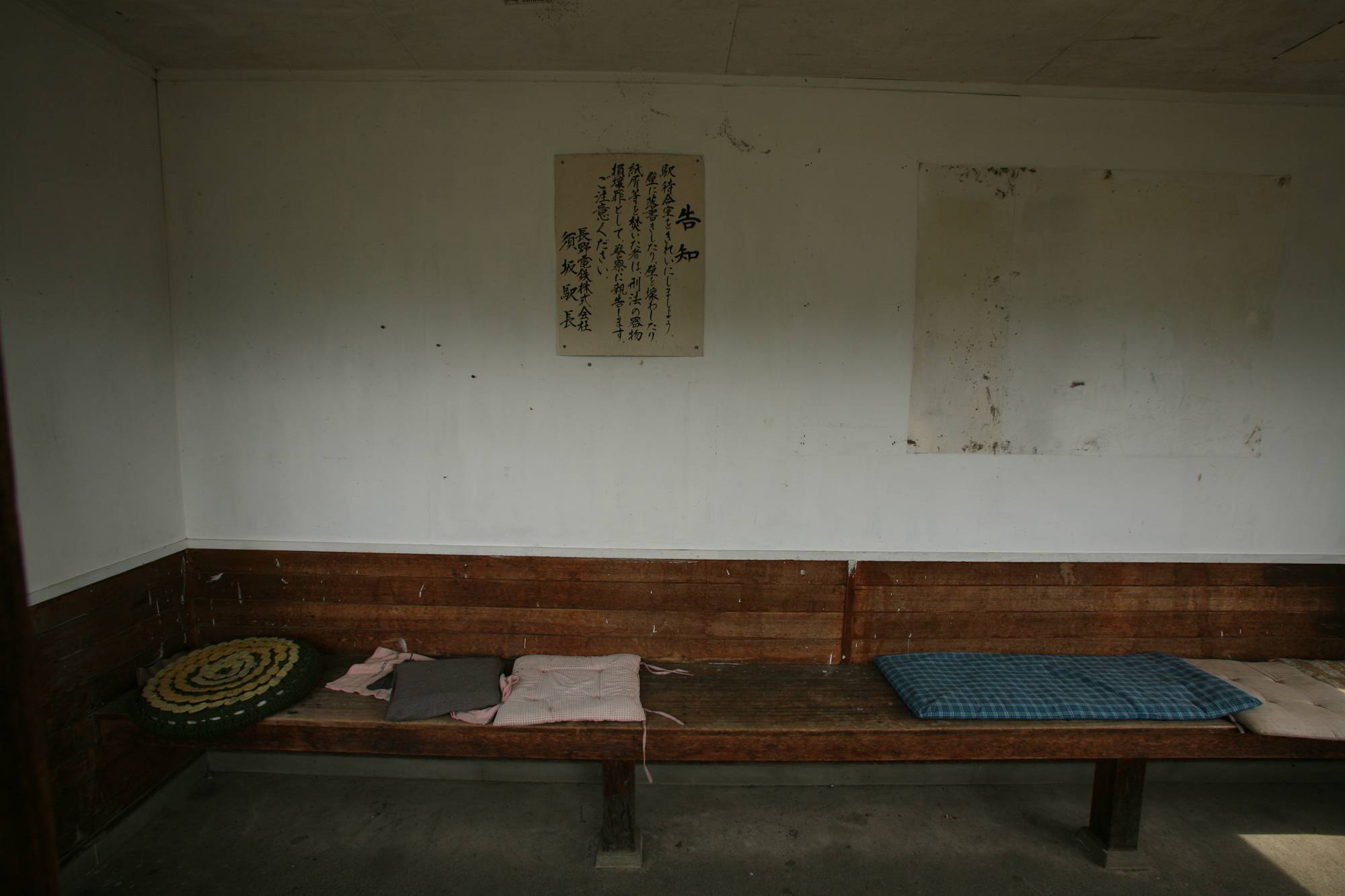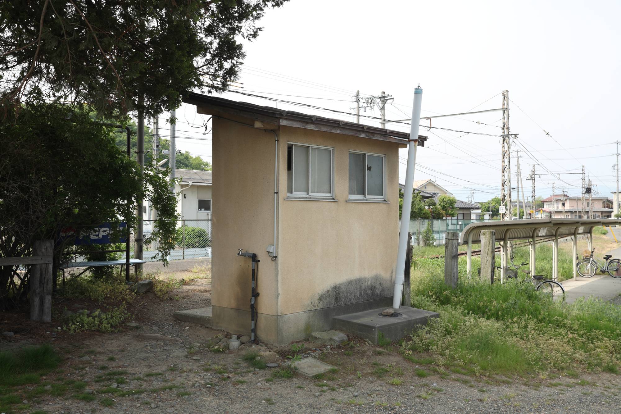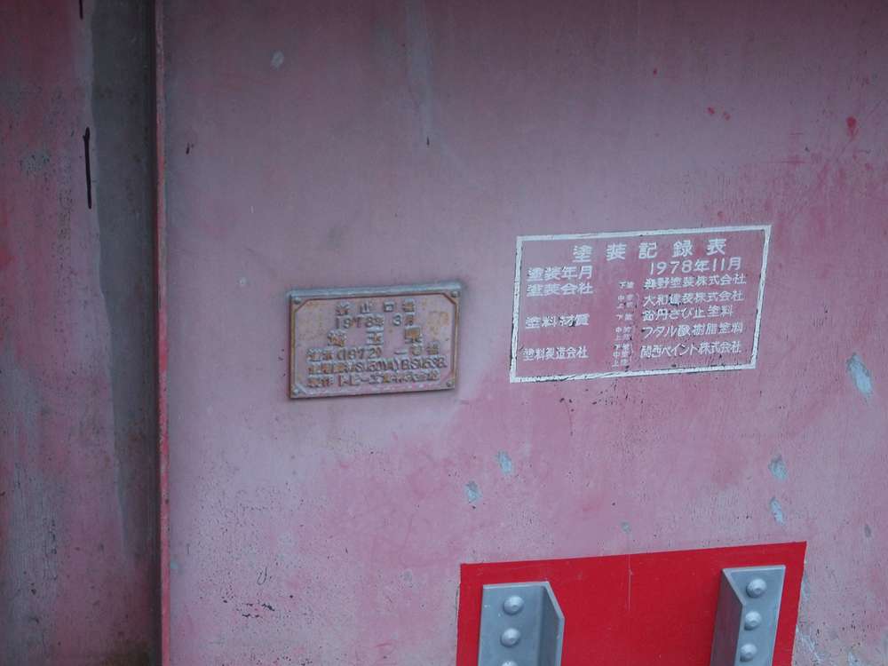 新山口橋 1978年3月 埼玉県 道示(1972) 一等橋 使用鋼材 SM50YA.YB.SM53B 製作 トピー工業株式会社 <塗装標記> 塗装記録表 塗装年月 1978年11月 塗装会社 下塗 森野塗装株式会社 中塗・上塗 大和建装株式会社 塗料材質 下塗 鉛丹さび止塗料 中塗・上塗 フタル酸樹脂塗料 塗料製造会社 下塗・中塗・上塗 関西ペイント株式会社 そうか、建造以降、一度も再塗装されていないのだな。 さて、旧橋。 右の山側に見えているのが西武秩父線のコンクリート桁。秩父側から小島沢橋梁(50m)、第二滝枕橋梁(138m)、第一滝枕橋梁(138m)。「中島」というべき山肌のせり出しを橋台にして、ほぼ連続で架かっている。橋梁名は『日本鉄道名所 勾配・曲線の旅 首都圏各線』(小学館)によった。検索しても出てこないので、西武秩父線の橋梁の名称が正しいかどうかは不明だが、かっこいいのは確か。長い桁でも、歩測で25m程度だった。 国道299号の秩父から飯能の間は、地図を見てもたくさんの旧道がある。いずれ原付で訪ねてみたい。 写真右端に写る橋梁については下記をご参照いただきたい。 ・太田川橋梁(天竜浜名湖鉄道)その1 ・太田川橋梁(天竜浜名湖鉄道)その2 キャノピーは、中央がくびれたH形をしている。給油所は、キャノピーの支柱はまっすぐ建てたくないと思っているのだろうか。屋根は波板の鋼鈑なのに、支柱は斜めになったりくびれていたりすることが多い気がする。いや、それはすてきなことだという意味だ。 駐車場である限りは、しばらくこの姿のままであり続けると思う。 冒頭写真、待合室とトイレの間に標柱のようなものがある。そこには… 真田の六文銭をなんだと思ってるんだ…! |