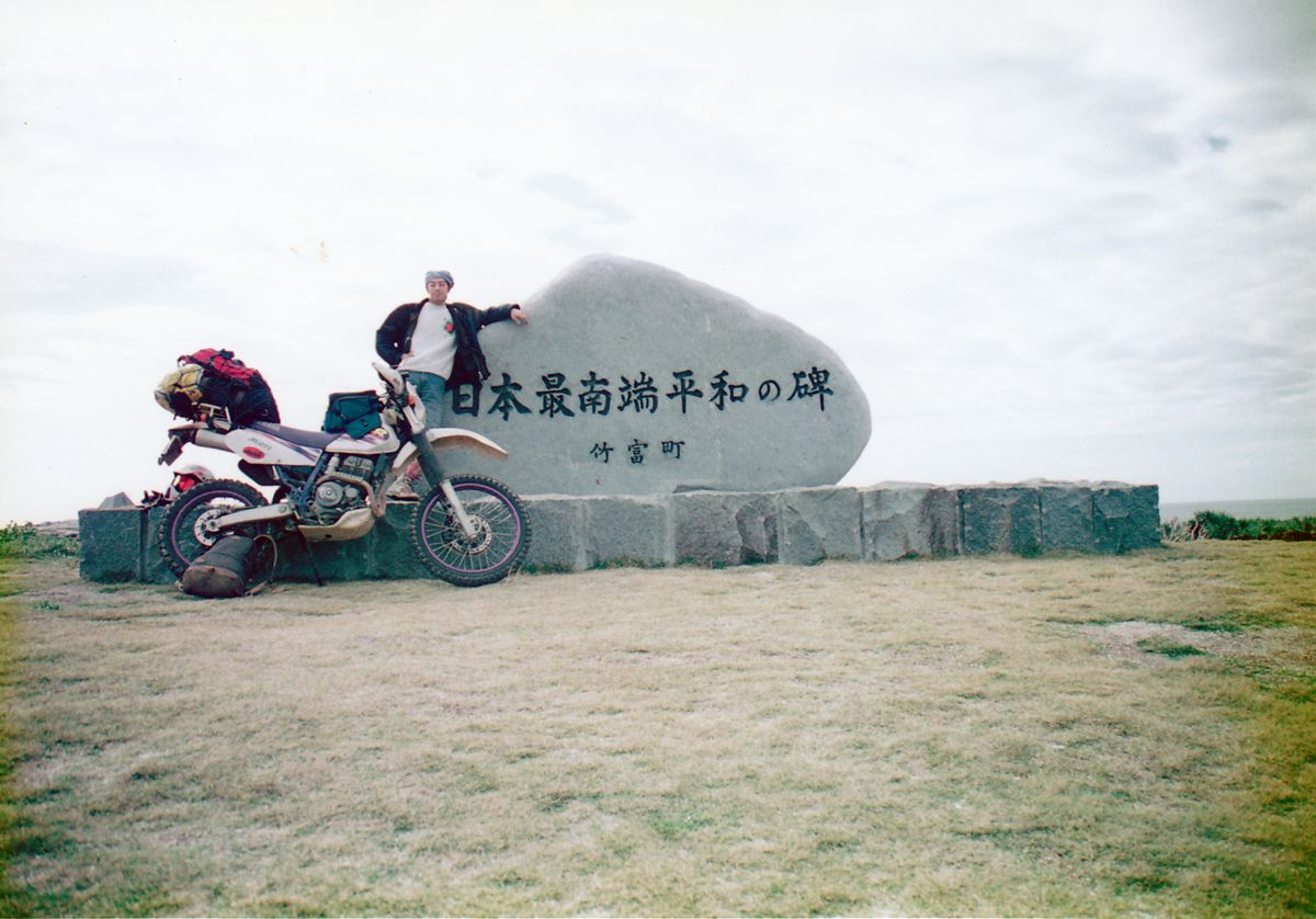 この時期は3日ごとに1往復なので、島に2泊するといろいろおしてしまうということで、日帰りで往復した。2時間ばかりの滞在。当時の『ツーリングマップ九州』には波照間の地図は(たしか)なくて、会社にあったB4判の『マップル』をコピーして持っていった。2万5000図を…などとは思いつかなかったのが不思議。 まだまだ沖縄ブームではない頃。年末のこの場所には誰もいなかった。 次に、与那国。フェリーよなぐにの写真はない。 事前にZZ-R氏から「比川浜というところがテント張れるよ」「ユキさんち、というカレー屋がうまいよ」と聞いていたので、そこに向かってテントを張る。ここに長期間滞在している人もいる。サトウキビのアルバイトをする「ワタリ」だ。