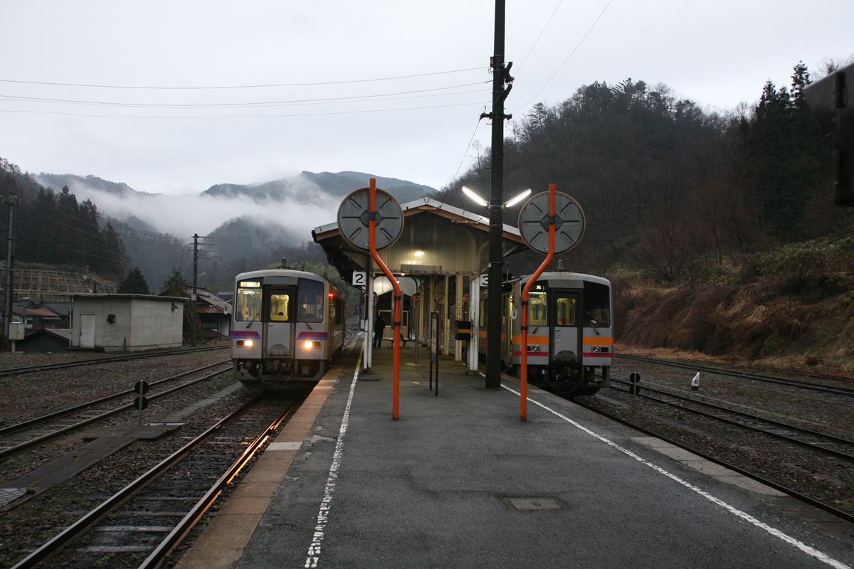 翌朝、国道13号で米沢方向に向かう。 経験不足過ぎて、バイクをどう持てば持ち上げられるのかもわからない。結局はなんとか脱出できたが、人が来るまで待とうかとも思ったほどだった。 でも、道がこうなっていたらクルマも来ないよなあ。 この前週は、いまに至るまでのつきあいとなる友人たちと出会った五十里湖キャンプ、この翌週は天竜スーパー林道、1週おいて奥志賀スーパー林道から秋山郷で抜けた。 土日で、安ヶ森林道・塩那林道・大川林道から福島、米沢へと抜け、周辺の林道を走ろうと思った。会社に入った年、金などないのでもちろん全部下道だ。テントを積むのもめんどくさいので、キャリアにはシュラフと工具を入れたICI石井スポーツの28リットルデイパックひとつ。このデイパックは、確か1987年頃に登場した「夢の」大容量安価デイパックだったがその話はいずれ。 通行止めが多いとは聞いていたし、当日は安ヶ森林道も路面を全面的に掘り返す工事で通行止め、引き返していただけにダメもとで行ってみると、ゲートは開いていた。とくに通行止めとは書いていなかったと思う。 塩那林道を走ったのはこの時限り。友人の話では、1990年代末までは、ゲートが開いていて走れることもあったらしい。 バイクはTT250R。もともとオフロードバイクに乗りたかったのだが、1993年にこのTT-Rが登場し、そのスタイルに惚れ、やっと免許を取る決心をしたものだ。購入は1993年12月。以後、宗谷岬、納沙布岬、波照間島、与那国島までこいつで足を記した。しかし、1997年2月に自宅駐輪場で盗まれてしまった。いままた所有できるなら所有したいバイクだ。 写真はすべてコンパクトカメラとネガ。当時は「いちばん安いフィルム」を探して使っていた。だからとても色が悪い。一眼レフとフジのリアラを使うようになったのはもうちょっと後の話だ。 ブロック積み。入口は壇上共用で一つ、その前に衝立。 壁はブロック済みだが、その上の換気部分は金属製、屋根および支えは木製。換気部分は更新されたもののようだ。 この街灯は、付け根にナショナルのシールが貼ってある。太い「N」の中に稲光のような線と「ナショナル」の文字が入るものだ。アクリル製で、おそらく、右が左の透明部分を回すと外れるのだろう。 (参考)第一交通産業-wikipedia この角度でトイレの入口を再度見ると、男女の案内が、衝立とトイレで逆である。これ、BADUIじゃないか、と思いきや、中は向かって左に個室、右に男子小用であり、もともと共用トイレなのであった。 …ということを無意識にしていたのだが、写真を撮ったのはこの2009年の備後落合駅が最初かもしれない。誰も周りにおらず、まだ吊り下げられた「便所」の看板に惹かれたような気がする。 そして、街灯。 トイレは使ったけれど、このころは中の写真は撮らなかった。なんとなく、撮っちゃいけない気がしていた。もちろんこうしてアップすることなど考えてもいなかったのだが、後日、こういう、どちらかといえば新しくされがちな施設、でも大切にされている施設こそ記録が少ないんじゃないかと思うようになった。 小鳥原は難読地名だ。いま国土地理院のウオッちずを見たら、ルビの振り方がずれている。 写真は早朝の駅。山間部の狭い平地ということがよくわかる。ワンマン運転用のミラーが邪魔だとかは思ってはならない。 この駅が宿泊施設になったらいいのに、と思う。 鉄道旅行で、備後落合で乗り換える方は多いと思う。ぜひ駅便をご覧いただきたい。 |