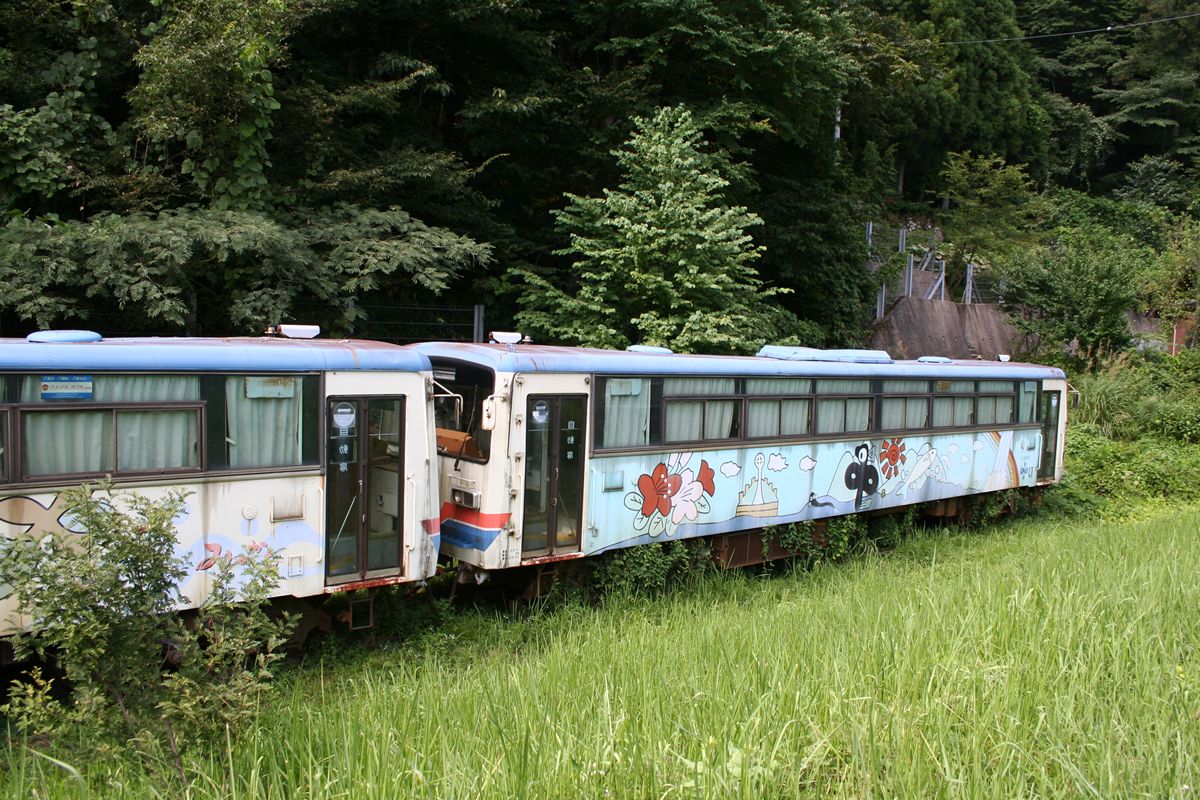 × [PR]上記の広告は3ヶ月以上新規記事投稿のないブログに表示されています。新しい記事を書く事で広告が消えます。 ここは、2泊3日で関西に取材に行ったときに、思いのほか順調に進み、3日目の予定に余裕があるのでどこかないか…とカシミール3Dで地形図を眺めていて見つけた旧道だった。地形図には、国道257号に「新日和田隧道」があり、旧道には隧道マークはないけれど、尾根を挟んで対峙しているルートがある。 その場で検索すると、例によってサイト『うさ★ネコサンド』さんがヒットした。とくに中部地方において、自分で行ってから情報を検索すると、ああ、ここもあそこも見落としていた、と気落ちしてしまう結果になる素晴らしいサイト。こちらの記事を拝見して、廃隧道があることを確認したので現地に向かった。上の写真は西口坑口である。 あまりこういう表現はしたくないのだが、周囲の湿った感じといい、夏の夕方という雰囲気といい、ちょっとまがまがしさを感じた。谷筋というのは湿っているものであり、そのドンつきにある隧道は湿った印象なのは当然ではなる。西側なので、日も当たりづらく、なおさらだった。 ここに国道から向かう際、採石場のようなものがあったので、一声掛けてから向かった。撮影していたら「そろそろ閉めるから」と、わざわざクルマでここまで声を掛けに来てくださった。ちょっとご迷惑をおかけした形になり、申し訳ない気持ちで反対側へ。 ガードレールには…いや、なにも言うまい。 坑口は綴じられてはいるが、上は剥がれ落ちている。扁額は、やはり右書きで「日和田隧道」。こちらは扁額のアップを撮っていないので署名が読み取れない。 詳しい情報は、うさ★ネコサンドさんの当該ページをぜひご覧ください。 PR 往復、のべ2本を取り終えてキャンプ場に戻る途中のことだ。ほとんど無人の国道107号を走っていると、橋の欄干になにかいる。鳥だ。クルマが近づいたときに飛び立たれてぶつかられるのもいやなので、クルマのスピードを緩めて近づくと、なんとフクロウがこっちを見ていた。 助手席のヘッドレストにひっかけておいたキスデジ(ISO1600)を構えると、なんと飛び立ってしまった。残念! 写真は、あわててシャッターを切ったところ。もちろんクルマは停止中。 かつて山をよく登っていたときでも、ふくろうは見たことがなかった。だから、とても嬉しかった。 このとき毎晩おっかけていたDD51重連の貨物列車も、いまはない。 ダム好きな方々が、どれだけこの本を楽しむのかわからないが、書名通りの内容である。私は本書の第2章ダムの歴史における「日本の堰堤技術者八傑」や「世界の~(同)」などの記事を楽しく読んだ。それ以外は、まあこうだろうな、という内容だ。 しかし。 本書は編集がまったくダメだ。 また、誰を読者対象にしているのかがわからない。 【編集について】 アーチダムとかフィルダムとかをダムの種類として1項目として扱うならば、なぜ写真がないのか。 各タイプの代表的な写真を並べて「これはアーチ。特徴は…」「これはロックフィル。特徴は…」「これは重力式。同前」みたいなカタログがなければ、なんの知識もない人は俯瞰できないし、実際にアーチダムを見ても「アーチだ」とわからないじゃないか。写真がないわけじゃない、しかるべきところに写真がない。 また、写真が適切じゃないものがある。115ページにラジアルゲートとローラーゲートの写真が載っているが、この堤体下流側からの遠目の写真をド素人が見比べて違いがわかると思っているのだろうか。ラジアルゲートの回転中心を「ここ」と示した上でゲートが円運動することを補助線で図示し、ローラーゲートはそれが上下することがわかるような補助線で示すべきだ。 もう一つ。クレジットがクレジットに見えない。著者名が業界団体なのに、図版には「著者作成」とか「著者(○○)作成」とか。奥付を見ると「一般社団法人ダム工学会 近畿・中部ワーキンググループ」が著者なので、その会が作成したと読めばいいのかもしれないが、そういう場合は出版物においては「著者」という表記ではなく団体名を書くものだ。また、各章末にコラムがあり、最終行に執筆者名が書かれているが、カッコもなく突然「雀の社会科見学帖」とか書かれても、私はそのサイトを知っているけれども、ダムファンのサイトなど見たことがない人にはこれがサイト名(またはハンドルネーム)だとはわからないだろう。夜雀氏やサイトにケチをつけているのでは全くない。それがサイト名だとわからない文脈に、サイト名をぶっこむ編集が悪い、と言っているのだ。 そういう点で、とても編集が稚拙であるのが残念。 【読者対象について】 雑学本なのか、ダムファン向けなのか、教科書なのか。 全然定まっていない。 「ダムの写真集があり、文庫にもなってるからいけるんじゃないか」と思ったのなら、やはり編集が悪い。せっかくのすごい執筆陣な