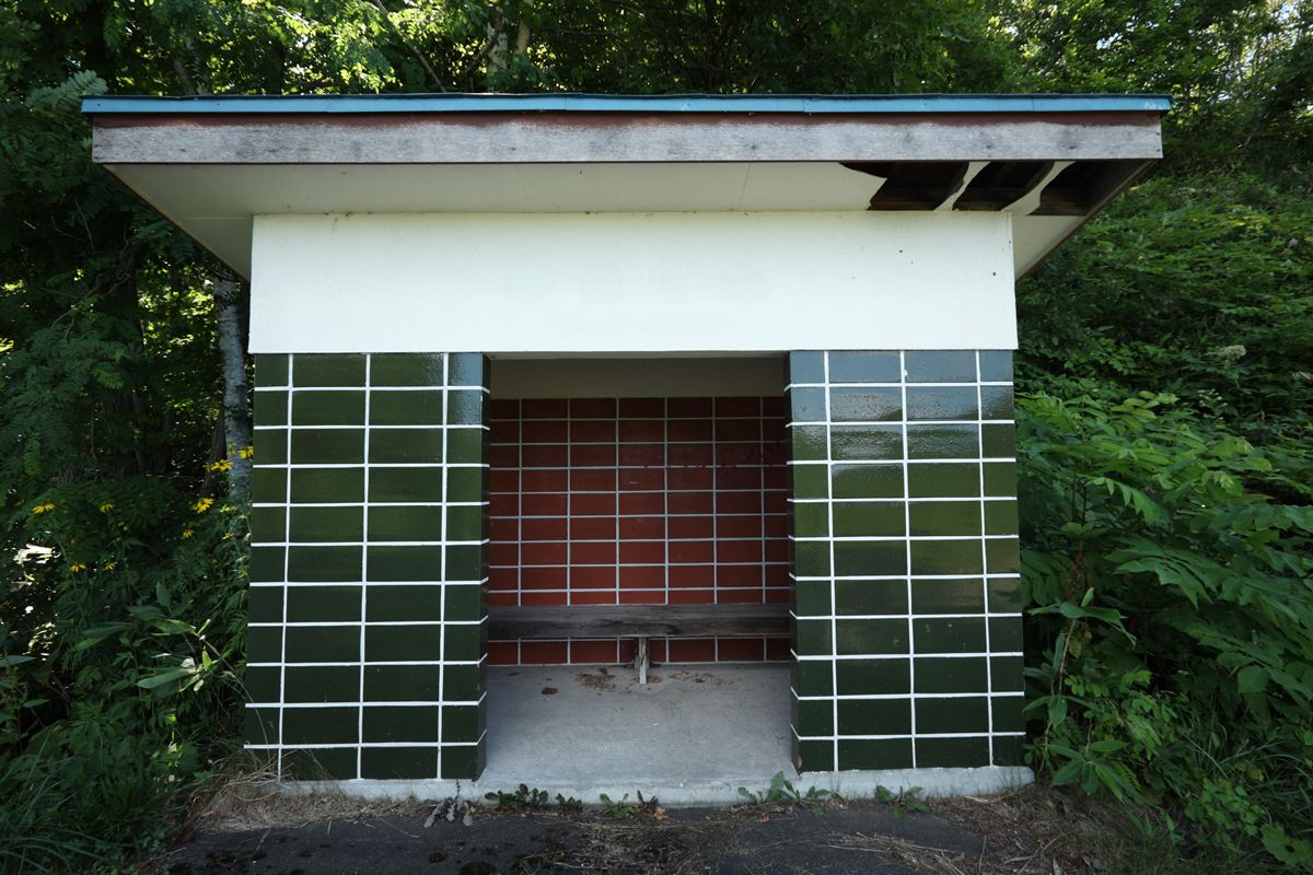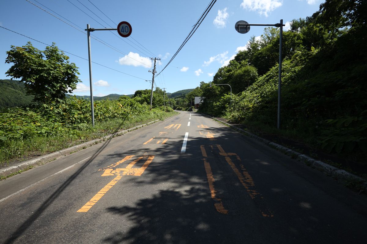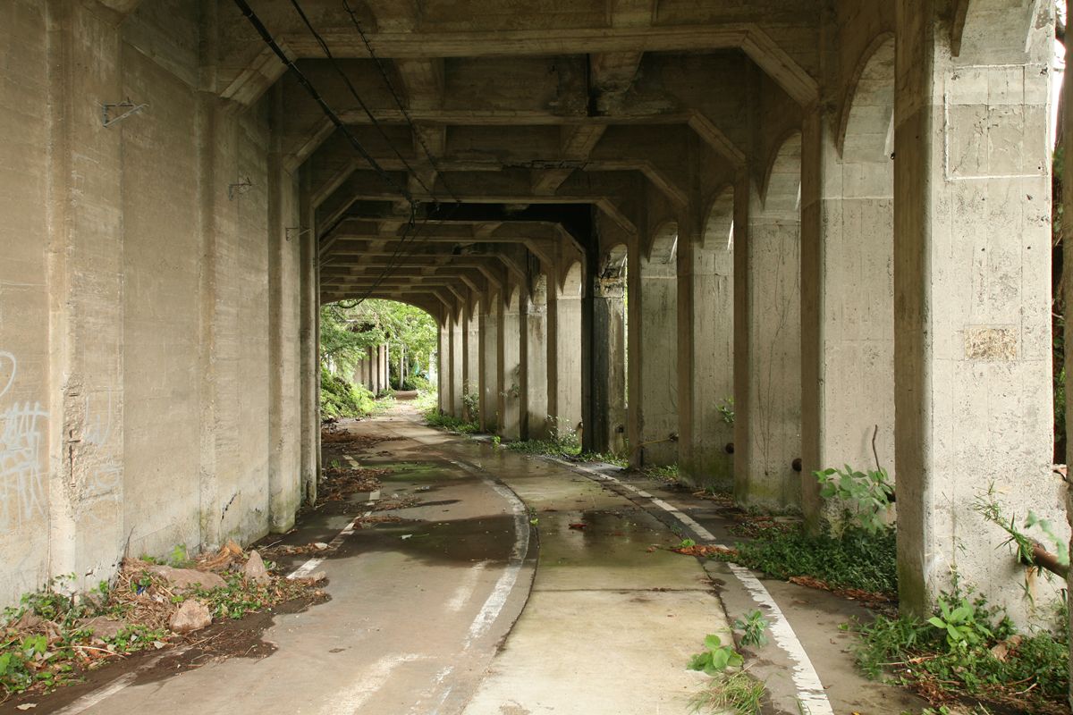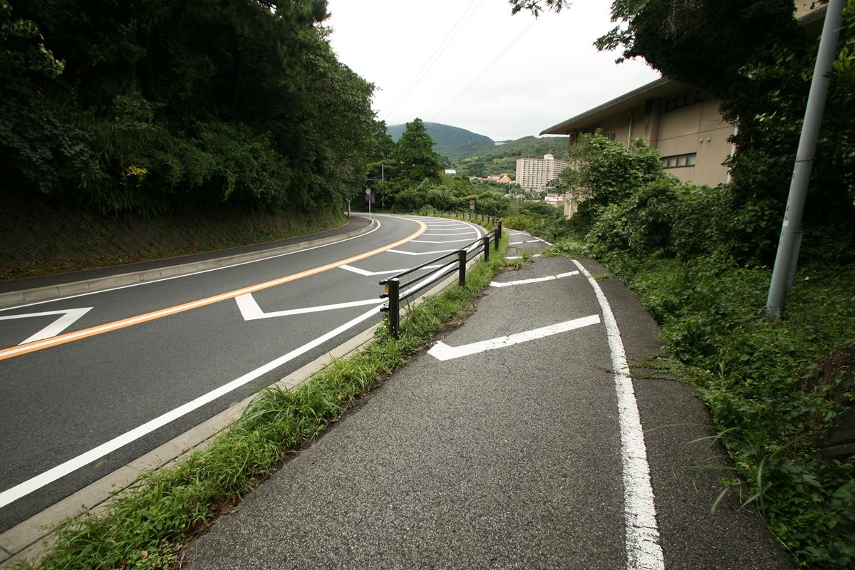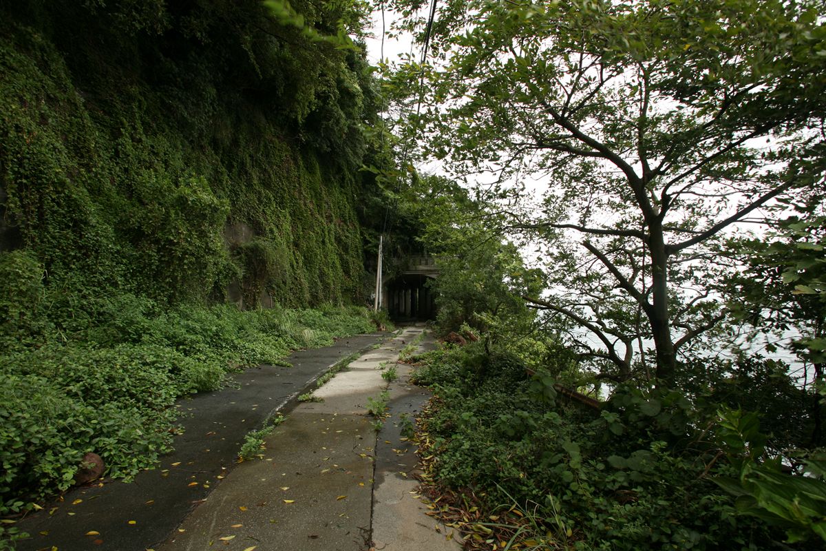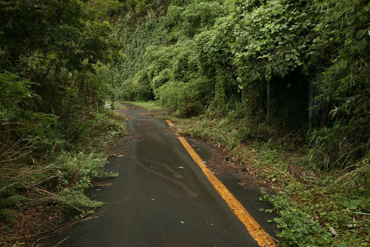 ここで道路の上に土砂が崩落している。これ以上先に進むには、藪をかき分けながら土砂を乗り越えなければならない。この日は天気がイマイチであり、また行程がギュウギュウだったので、ここで引き返す。 一度、出発地点まで戻り、今度は南に向かう。 この日は、写真集『廃道 棄てられし道』の取材で、丸田祥三さん、平沼義之さんと伊豆の廃道を訪ねたときのもの。この隧道や洞門は写真集にも収録されている。丸田さんの作品をこそ、ご覧いただきたい。 (2010年9月撮影。2012年6月再訪、ほとんど状況変わらず) もう20年ほど前に廃止された表示で、ということは、この路面は20年以上前からそのままだということだ。舗装というもの、そして路面のペイントというものが、どれだけもつのかは知らないが、交通量は僅少であろうこの山間部では、これくらいのもちはあるのだということがわかる。 岩見沢市のサイト(PDF)を見ると、ここは「巴公団前」という市営万字線のバス停のようだ。 万字の集落には入らなかったので、いずれ再訪したい。 |