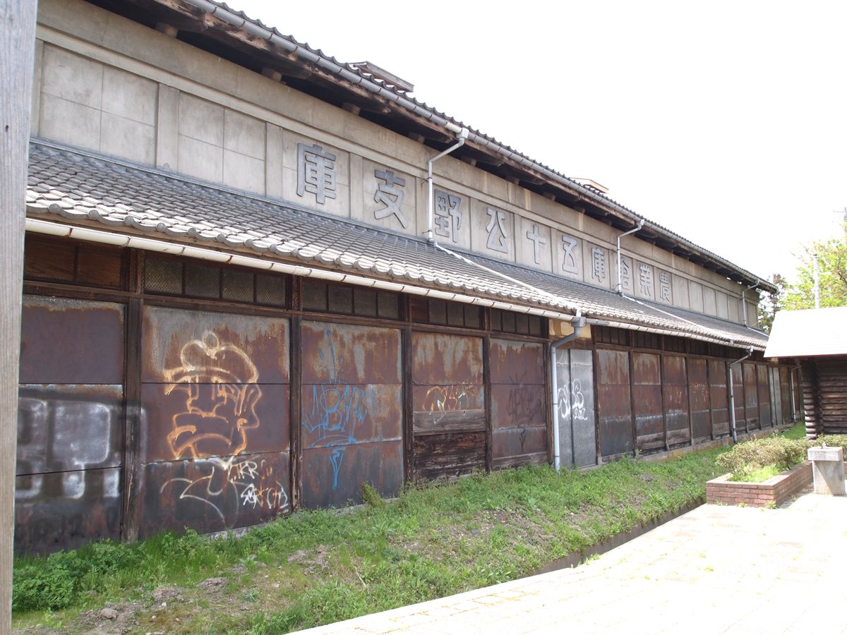 冒頭の写真のガレキの中には。形式 H6-AE7-T 定格電圧 7200V 定格電流 100A 変圧器 6600V/110V 定格しゃ断容量 50MVA 極数 3P 周波数 50.60~ ZCT.NO B2394 はずし電圧 AC110V 引はずし電流 1.0/0.8A ○量 74L 総重量 175kg 製作 昭和44年5月 製番 B108926 ○○(たぶん日立)製作所 二枚目の写真、左に見えるのは、吉岡材木店という製材所である。その左、緑の部分が、かつての鉄道の敷地。 ここから振り返ると… 上の写真は、1984年3月末に廃止された国鉄赤谷線意義美濃駅跡の農業倉庫。手前の道路はかつての線路跡、五十公野駅跡だ。 (新発田)支第43号 新潟食糧事務所 昭和五十九年三月一日設定 国内農産物(米)検査場所 云々。 向かって右にはこんなものが。 政府指定倉庫 (他の文字は読めない)