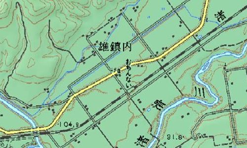 当然。数値地図化する際にはその地図を使うため、こうして渚滑線が残ってしまったわけだ。 これは誤記ではなく経年変化について行けていない例だが、地形図にも誤記はある。二種類あって、一つは登山道などが実際の位置と微妙に異なるもの(資料を基に地形図を作成するときなどにできやすい)、もう一つは完全な誤記、単純ミスである。 上の地図、よく見ると。 ◎ゆうちんない ×おちんない どうしてこうなった? 地名は「おちんない」で正しい。真偽は不明だが、「おちん」がよろしくないとして駅名を「ゆうちん」とした、と聞いたことがある。国鉄は平気で漢字や読みを現地と異なるものにするので、ありうる話だ。 * * *