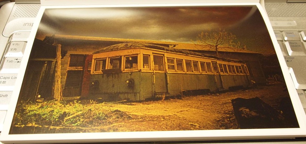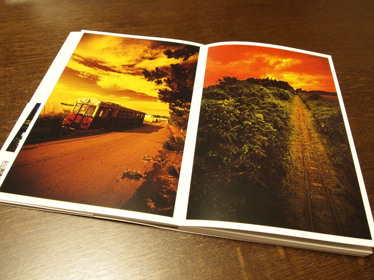 上の写真のように、本書は、ノド(綴じてある側)までめいっぱいに開く。そして、紙が厚くて硬い。ノドまで開くこの製本は「コデックス装」、通称「綴じっぱなし製本」といって、本来は、この背に布を貼り、ハードカバーをつけるものだ。これを並製本にすると、こんな感じに見開ける。 私のダメな目では、5色刷りと教えていただいたページをルーペで覗いてもそれだとわからないので、このページもそうなのかどうかわからないのだが、丸田さんお気に入りの一枚が右の作品。こんな写真ではわからないだろうが、まるで絵画のようなのだ。最近撮影したデジタルカメラによる作品の、手が切れるようなシャープさと被写体の硬さとはうってかわって、画面全体がとても軟らかい。私はどシャープな作品も大好きだけれど、丸田さんのファンはこちらの作風を好む人も相当いるのだろうな、と思う。ほかにも、まるで昭和30年代の雑誌の付録のようなやさしい、少しくすんだ色合いの作品もいくつかある。たとえばこの作品。(自宅の蛍光灯が写り込んでいるのはご容赦!) 巻末には、江上さんこだわりのページとして、全作品の現役時代の写真が掲載されている。
