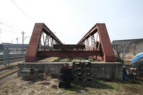 さらにさらに。 ここで定型句、「また行こうっと」。 『明治時代に製作された鉄道トラス橋の歴史と現状(第2報) 英国系トラスその2』(西野保行・小西純一・渕上龍男)によれば、この桁は松本電鉄の前身のひとつ、河東鉄道として開通した1923年(大正12年)から架けられたいたものだ。現地の説明看板では、製作年代を1885年~1890年と推定しているが、私のメモには日本鉄道の烏川橋梁(現・高崎線、6連)または荒川橋梁(現・東北本線、4連)または田川橋梁(現・東北本線、1連)からの転用ではないか、と書いてある。ソースがなければそんなことは書かないと思うのだが、ソースがわからなくなってしまった。1990年(平成2年)に現在の桁と交代している。 「横桁考」と見出しに書きながら、何一つ考察はない。この、曲線形の横桁がどのメーカーのものか、それを調べるのが頓挫しているからだ。 前述論文によれば約150連が存在した、単線の英国系100フィートポニーワーレントラス。いまも現役である桁もあるのに、これを保存してくれた意義は大きい。説明看板には「永久保存」と書いてある。世の中の同系トラスのすべてが現役でなくなったとしても、このトラスだけは残っていたらいいな、と思っている。 この灯油店は、まもなく廃止となる長野電鉄屋代線の松代駅の近くにある。