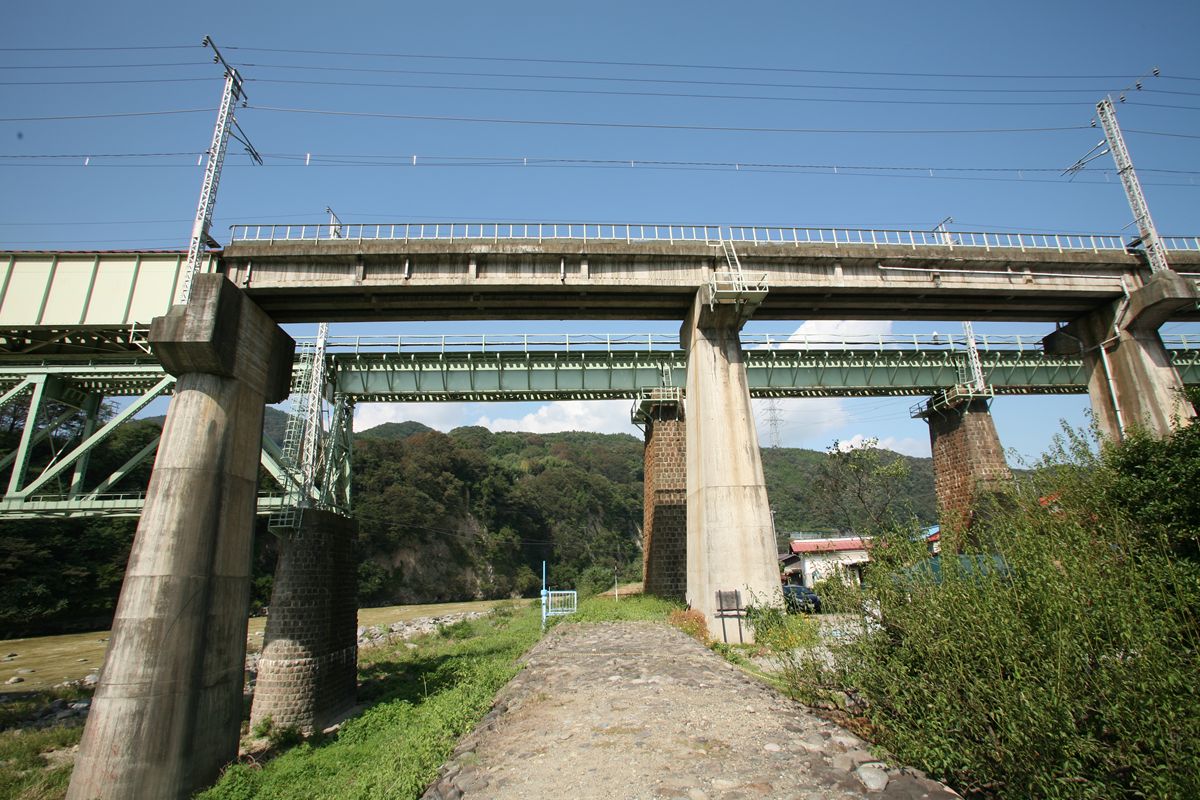 上越線 第二利根川橋梁(群馬県)の続き。 下り線の開通は1924年(大正13年)3月31日。上り線は1963年(昭和38年)12月20日。その間、約40年の差がある。その時間の感覚は、上り線開通から2011年12月末が48年間であることを思いたい。その40年の間に、大きなプラットトラスでなければならなかったスパン47mは、鋼鈑桁でいけるようになった。 橋脚も両者の時代の差が見て取れる。下り線は石積、上り線はコンクリート。このまま左を向く。 第7連と第8連の間の第7橋脚は白いが、石積を塗ったもの。その左、少しだけ見えている第8連と第9連の間の第8橋脚はコンクリート製だ。 もう少し前に進み、桁の下に行く。 位置を変えて高崎方を見る。 川岸に戻り、上り線のPC桁を。 . 淡々とここまで。 例えて言えば、純文学ではなく娯楽作品である。 内容は、数多ある路線別紀行文から、ダム建設と関連がある路線だけを集めたようなもの。、鉄道好きに「ダムって面白いよ!」とすすめる内容ではないし、それなりに鉄道史に詳しい人であれば、ここに書いてあることはほとんど知っているだろう。その程度の内容だ。何を目的にこの本が作られたのか、まったくはっきりしない。だから、それを「娯楽作品」と表現した。娯楽としての鉄道紀行を読みたい人には楽しい本かもしれない。 私個人は娯楽作品ではなくて純文学を求めているので、その観点で感想を書く。 最大の不満は、「ダムと鉄道」と銘打っていながら、その関係性を俯瞰した記述が一切ないことである。「ダム建設に関わる鉄道にはこうした傾向がある」とか「電力史とダム史と鉄道史と政治史はこう関わりがある」とか「河川管理と水利権」とか、そういうことはまったくない。電力史や水利権の記述がないままに、個別に、黒部峡谷鉄道がどうした、大井川鉄道がどうした、ということばかり書いている。その内容は、wikipediaの各路線の項目を見れば十分、という程度である。 電力史をご存じない方は、戦前の五大電力会社、戦時下の日本発送電、戦後の9電力会社についてwikipediaの項目を読むと、かなり補えると思う。日本発送電の項目だけでも流し読みして欲しい。 以下、指摘したい誤り及び意見。 ●P73~75 立山カルデラの土砂量 「立山カルデラ内には、いまも2億立方メートルほどの崩落土砂が残る。放っておけば富山平野全体が、高さ2メートルの土砂に埋め尽くされるほどの量だという」とある。この数値は公的なサイトを引用したものだと思うが、この数値は実は異常である。かつて、この数値について考察したことがある。こちらをご覧くただきたい。 立山カルデラの土砂の量の不思議 ●P134 アプト式 1968年(昭和43年)まで信越線で用いられていたとあるが、もちろん1963年(昭和38年)の誤記。交通新聞社の本なのに…。 ●P151第4章のリードに異議あり 第4章は奥只見ダム・田子倉ダムである。その章扉に「電源開発の『発電所専用鉄道』から、国鉄に移管された政治路線。」(強調磯部)というリードがある。「政治路線」とはなんだろう? 鉄道建設計画には経済的事情と政治的事情があるのだが、政治的事情のある路線がそういう書かれ方をされるならば、東海道本線よりも先に信越本線が建設されたのも、東北本線が日本鉄道により建設されたのも、日本鉄道の設立そのものも、政治的事情となろう。私はこういうレッテル貼りが大嫌いである。 ●P221~225場ダムに関する記述への大きな違和感 文筆家の竹内正浩氏が「交通新聞新書『ダムと鉄道』を読了。著者は骨の髄まで新聞社の文体が染みついている人。新聞記事ならツボを押さえたいい記事なのだろう、たぶん。ところが どの章も似た構成で、しだいに文章のあざとさが鼻に付く。致命的なのは鉄道ファンにとっての情報量が少なすぎること。着眼点がいいだけに惜しい。」(文字色調整磯部))とツイートしていたが、この章はまさにそうだと感じた。 これ以外の章は、単なる鉄道紀行文なのに、なぜかここだけ八ッ場ダム建設批判になっているのだ。ダムに沈む予定のJR吾妻線の新線、第二吾妻川橋梁(新)に関する記述は、無知ゆえとはいえ、許せない記述になっている。 一方、ダムに沈む旧橋に関する記述。 第二吾妻川橋梁(新)は、このような形式で、橋長431mに対して橋脚(主塔)はわずか2本。中央スパン167m、しかも曲線桁(そうしたことも著者は書いている)。鹿島のサイトには明確に「『PRC斜版橋』という構造形式が採用されたのは,鉄道橋には乗客の安全性と快適性の確保が求められること,吾妻川をまたぐ大スパンを実現することの二つの理由による」と書かれている。一方、旧橋は、スパンが46.8mしかない単純トラス橋である。橋長は68.41m。こうした、規模がまったくことなるものを比較して何がしたいのだろうか。「豪華な橋を作りやがって」という印象をベースに書かれた、本筋に関係ない蛇足である。私はここに、竹内氏の言う「文章のあざとさ」と、新聞記者らしい「無理筋な主張をさも当然のように書く
