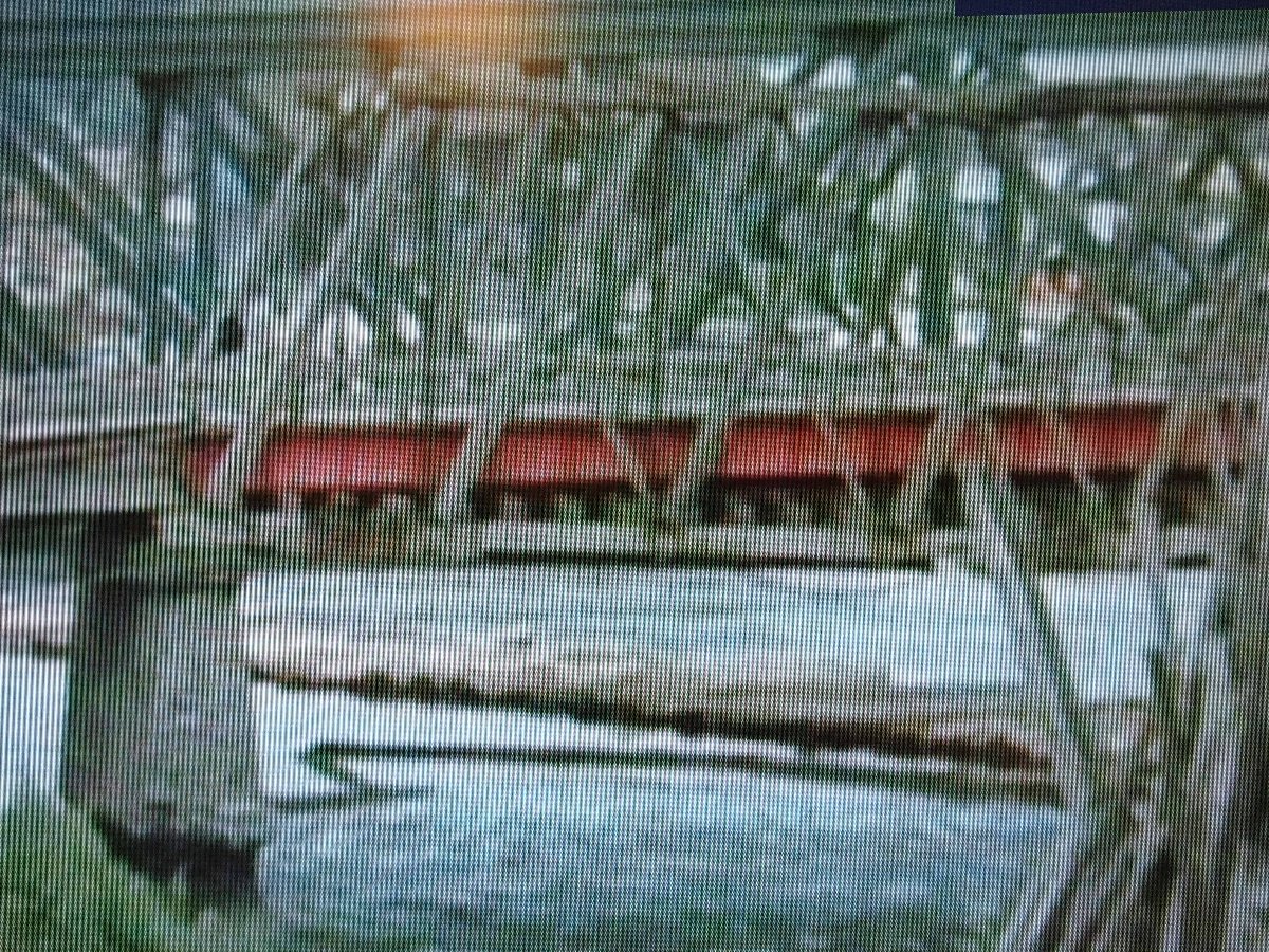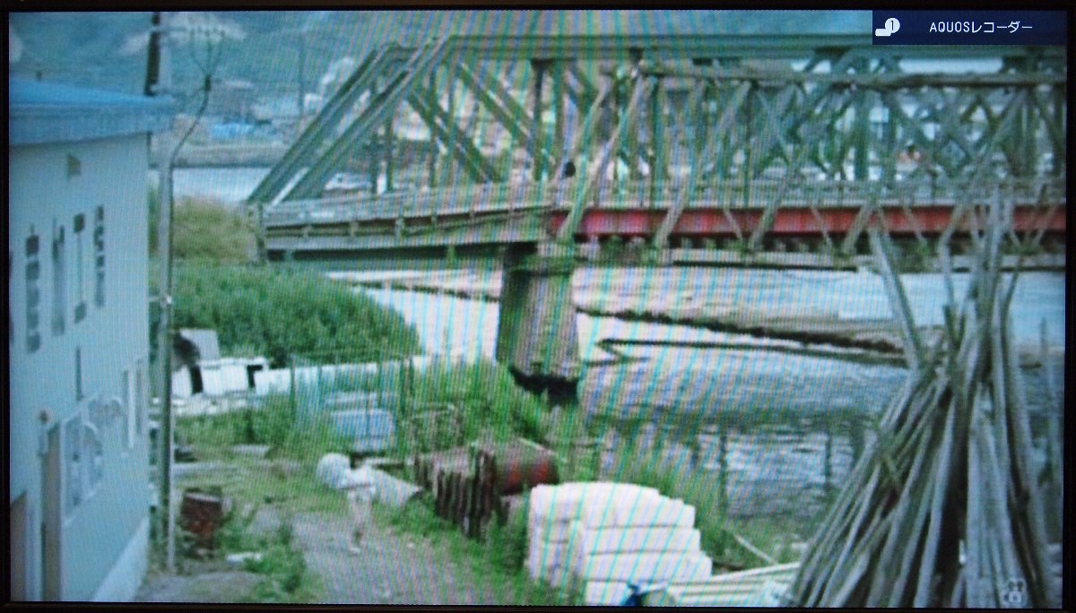 映画や映像に造詣の深い、写真家の丸田祥三さんと倉本聰氏の話をしていたとき、『駅 STATION』の話になり、血糊の話になった。この時期の木村大作氏の撮影した映画は、ピストルで撃たれると、血しぶきが水鉄砲のように飛ぶ…というのだ。そうだったのか。そう思って、以前録画してあった『駅 STATION』を再度、見てみた。 倍賞千恵子さんがとてもすてきなのだが、そんなことは割愛して、これだ。 画面下、歩いているのは烏丸せつ子演じる「すず子」だ。でも、私の目は、右上の三つのトラス橋に釘付けだ。 いちばん向こう、端柱が立っているのが副港橋梁。今も廃橋として残っている。その手前が、留萌本線。いまもある。そして、その手前にあるのが…木製のトラス橋! というか、鋼と木の複合橋? これは道路橋である。鋼製のプレートガーダーを、木製のトラスが補強している…なんてことは強度からしてもなさそうだ。トラスの横桁の上にプレートガーダーが乗っているようにも見えるが、横桁が朽ちて離れている部分もあるし、後述の理由もあるので、そうした構造ではないだろう。そして、いちばん注目点したいのは、トラスの組み方はダブルワーレンのようにも見えるが、基本はアラントラスになっている点である。 アラントラスについての参考:上士幌町の仙翠橋/アラントラス備忘録 画面に映っている範囲で書くと、 太い=上弦、下弦、端柱と同じ方向の斜材(/方向) 細い=端柱と逆向きの斜材(\方向) 鉄線?=垂直材 である。拡大してみる。 実は、先の副港橋梁を訪ねたときには、この橋のことを知らなかったのだが、ちょっとだけ写っていた。 この道路橋は、いまはない。改めて地図を見ると、ここだけ道路が分断されている。そして、衛星画像を見ると、プレートガーダーだけ残っているのがわかる。 8月中に北海道を再訪することができれば、ここも見直しておきたい。 この橋の情報、求む!!! == 2012.9.4追記 留萌本線の脇にかつてあったアラントラス?のつづき。 「歴史的鋼橋集覧」の記事はこちら。 下呂駅の南、JR高山本線の車窓から見える位置にこの橋はある。渡っているのは飛騨川。飛騨川は木曽川の支流であり、はるか下流、美濃加茂市の川合というそのままの地名のところで木曽川に合流する。 飛騨川の右岸・西側を走る県道88号からこの六ツ見橋を渡ろうとすると、直角に折れ、JR高山本線を踏み切りで渡る形になる。なにしろこの位置関係だ。 時速30km制限、対面通行、重量制限は8トン。幅員が狭いため、歩道は別。右のみ親柱があり、そこには「飛騨川」と書かれている。 帯雲橋より約3キロメートル、塚田の渡しより上流の地に六ツ見橋が架橋されて、渡橋式が行われたのは大正12年(1923)3月16日である。最初、吊橋形式のものであった。この橋は、昭和6年4月に、鉄骨板橋として改築、当時、3万3401円37銭の経費を要した。時は、高山線下呂駅開業直後のことである。下呂駅へ降りた客を、湯之島温泉街へ運ぶ唯一の橋として、おおいに利用された。昭和39年10月の下呂大橋の完成により、昔日の重要性は減少したが、昭和49年5月には工費3000万円をもって歩道橋も付設された。 名前の由来 六ツ見橋と名付けられたのは「下呂六景」を見渡すことができるところから名付けられたそうです。下呂六景というのは… 弘法山(信貴山)・湯ヶ峰の夕映え・下呂大杉・湯ヶ淵の湯煙・中根山(下呂富士)・温泉寺の桜 (下線磯部。以下略) 株式会社