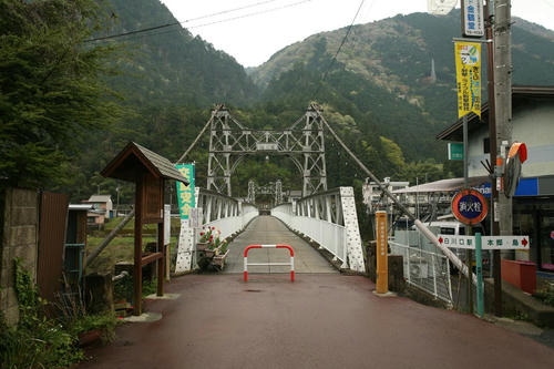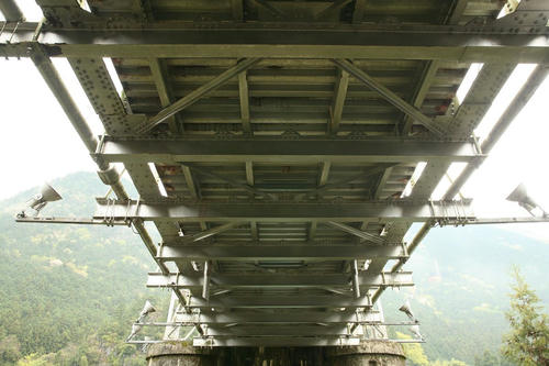 1978年12月 岐阜県 道示(1972) 使用鋼材 SS41 製作 日本橋梁株式会社 というもの。日本橋梁の銘板は、54年を経て少し大きさ等が変わったようだ。 その前に、こうやって立っていると、新聞販売店からおばちゃんが袋を持って出てきた。そして、橋を渡り始めた。どこへ行くのだろう、日常的に使われているのはいいな…などと思っていたら! おばちゃんは、その袋を川に投げた。ゴミ袋を投げ捨てたのだった('A`) ちょっとげんなりしながら桁裏へ。 から上が、昭和53年の改装時のもので、補剛桁そのものは開通時からのものである。 アンカーがどうなっているのか、見てきてなかったなー…と思ったら、うさ★ネコサンドさんに驚愕の実態があった。これを見てないなんて。無念(そんなのばっか)。 JR高山本線白川口駅の近くにある、飛騨川を渡る橋。鋼製主塔を持つ吊橋で、85年が経過している。現在は歩行者用となっている。場所はここ。 飛騨川と、支流・白川の合流地点である。白川はここから東に遡上し、東白川村、中津川市加子母に至る。その道筋を「白川街道」という。現在の県道62号と国道256号の一部である。同じ岐阜県ではあるが、白川郷とは関係がない。同じ県内に「白川町」と「白川村」があるのはよそ者には混乱を招きそうだ。 地図を見てわかるとおり、ここに白川橋がかけられたのは、白川街道の重要性と、国道41号(1953年より)の重要性からである。文章で説明するとまどろっこしいが、川が合流するところで橋を2本かけて済ませられるようになっている。 1960年、下流に飛泉橋(ランガー桁)が架けられて国道が換線され、こちらは県道となった。白川街道から国道41号に出たい人にとっては、飛泉橋を経由すると遠回りになるため、この白川橋が現役のころは重宝されたに違いない。 この白川橋がどんな橋であるかは下記に譲り、ここではディテールを見て行くだけにする。 ・wikipedia(写真がどこかで見たことがあるのは偶然ではない) ・歴史的鋼橋集覧 まず、東側からアプローチする。 さて、一歩踏み込む。 大正十五年製作