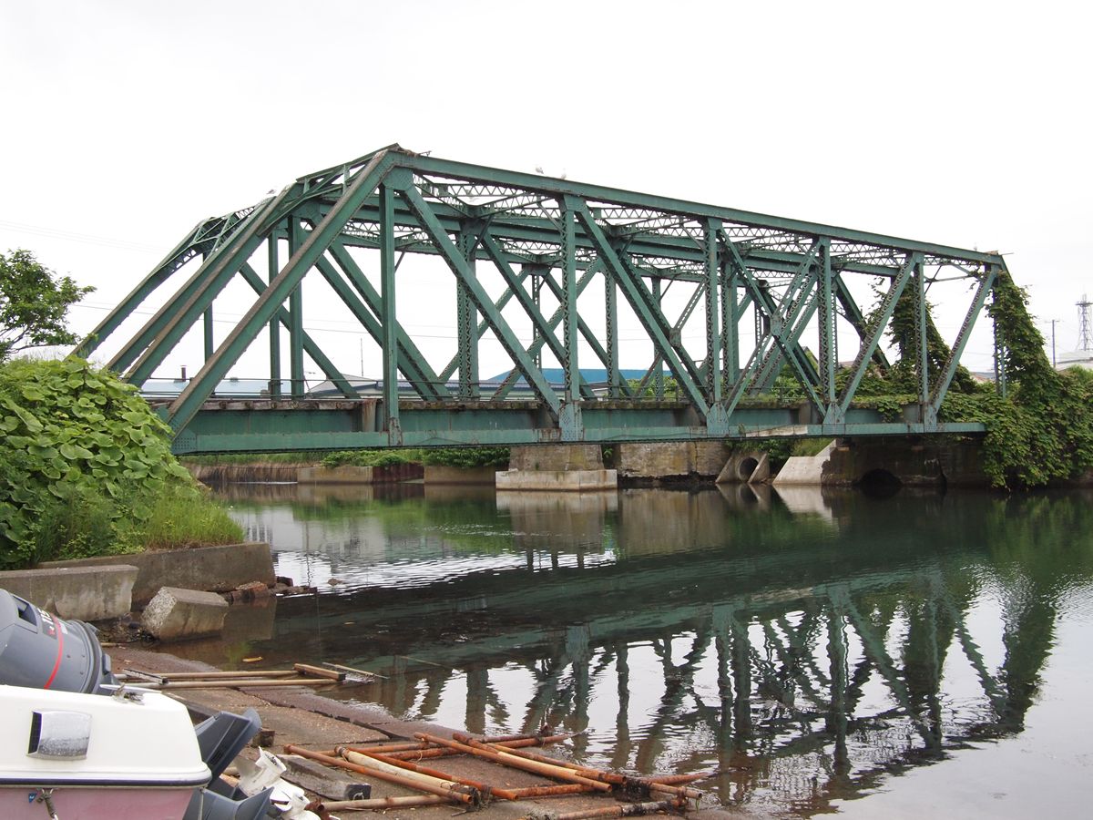 留萌本線の下り列車が留萌駅を出るとすぐに、車窓右に使われていないトラス橋がある。それが副港橋梁だ。