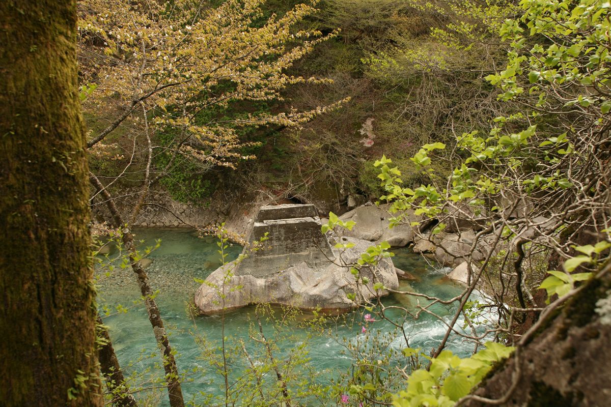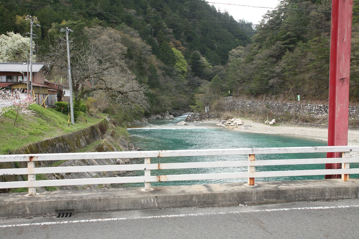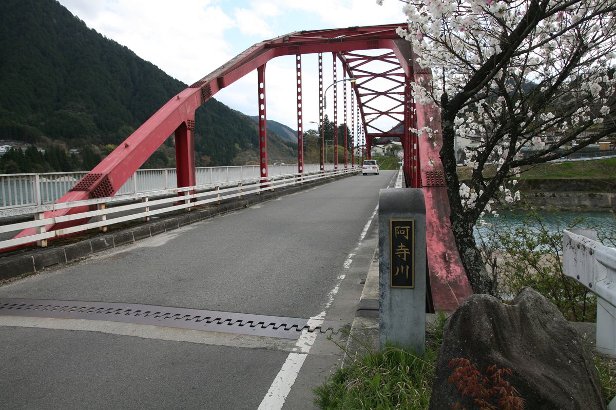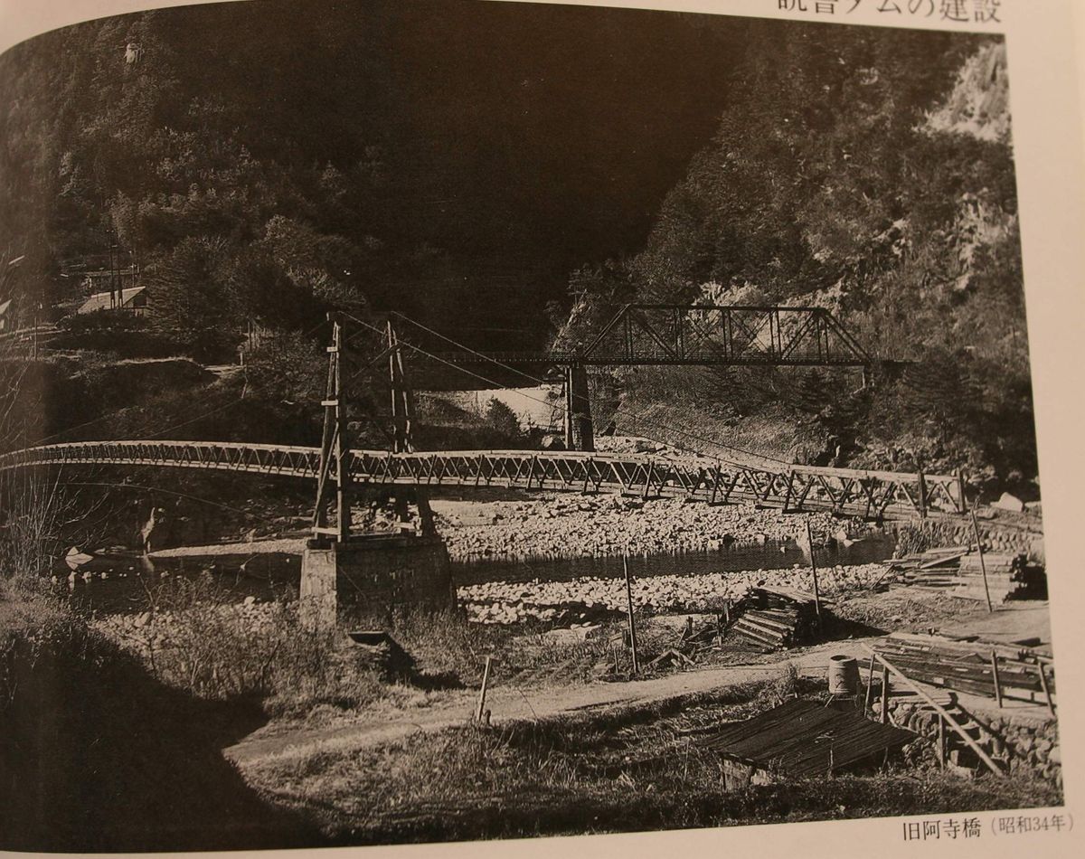 「阿寺渓谷」と書いてある橋のつづき。『トラック野郎 熱風5000キロ』のオープニングに出てくる橋である。