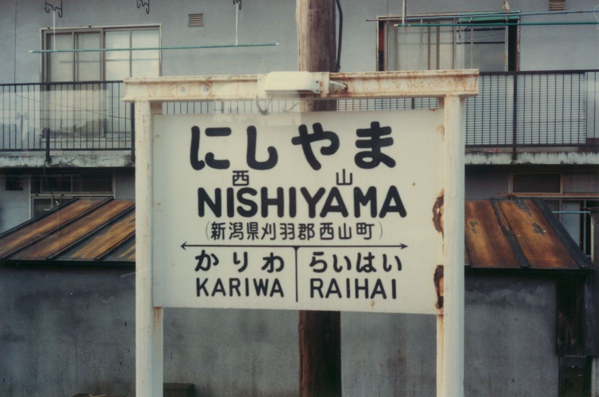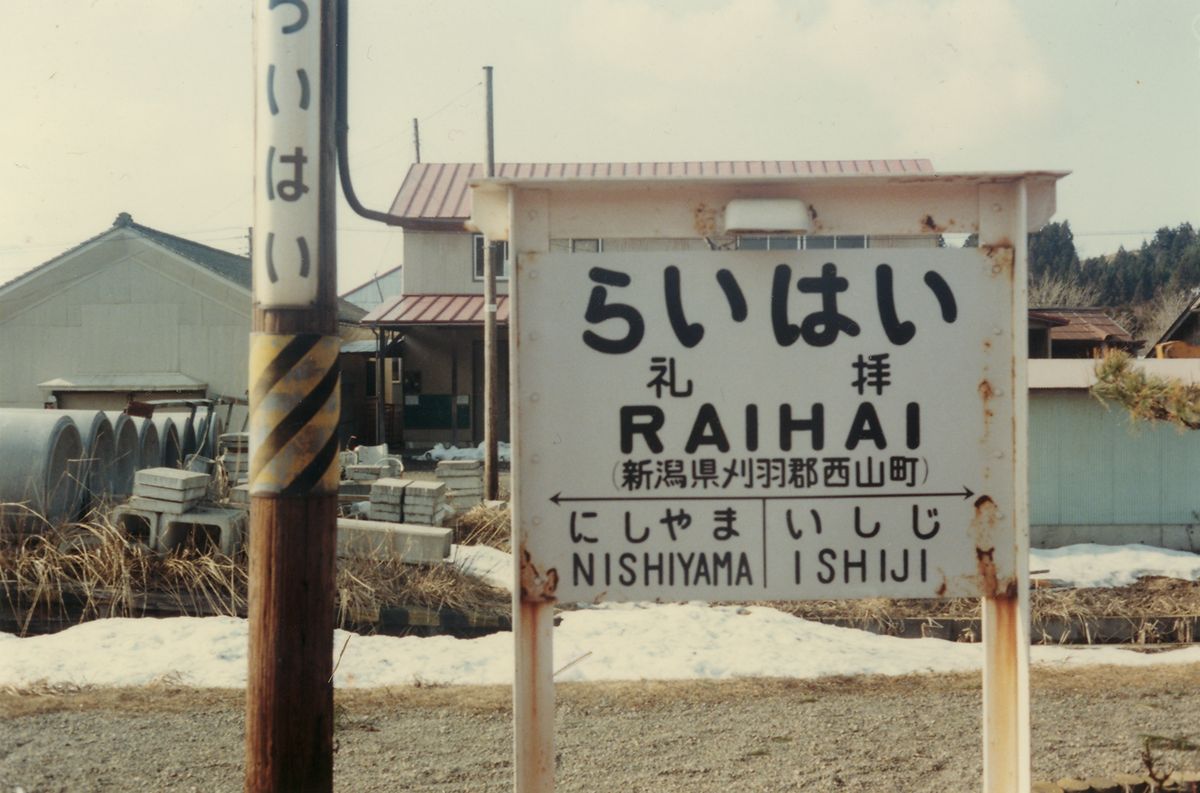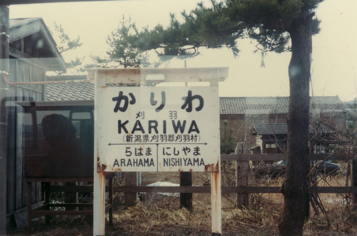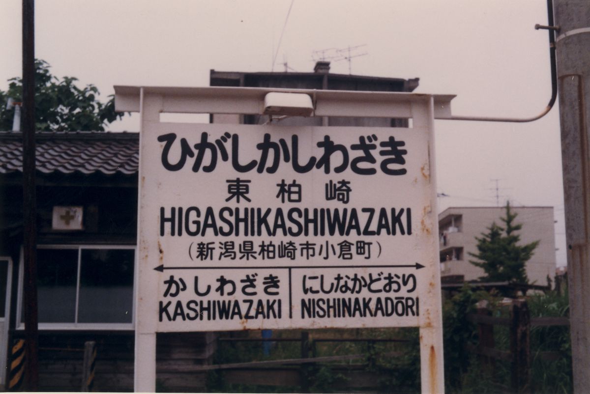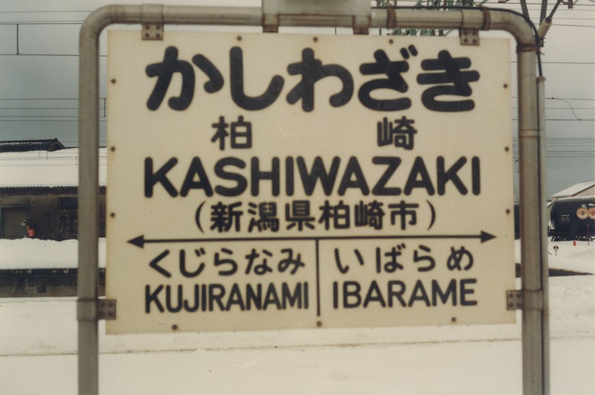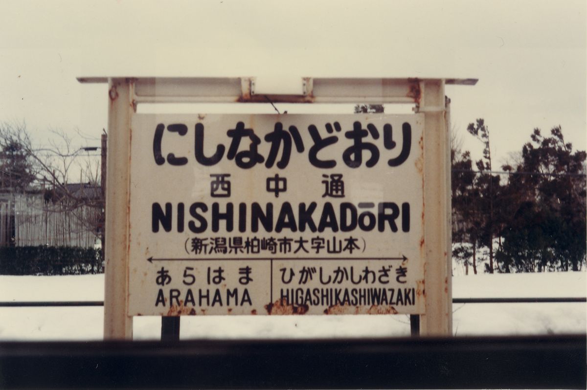 昭和50年代の駅名標(越後線)その2の続き。 ●石地駅 しかし、燐駅表示の矢印がなく、T字型の交点に「・」がある。なぜだろう? ●礼拝駅 ●西山駅 そして、鳥居の組み方だ。古レールなのだが、縦の柱が、側面ではなく、レール頭頂部がこちらを向いている。これはいま気がついた。写真を撮って30年近く経つのに。こういうのに気づくことが、「数を見ることの大切さ」を再認識させられる。 西山と田中角栄。越後線と平行する国道116号は、新潟から来ると、それまで2車線だったものが、西山駅付近から4車線になる。かつてはまた2車線に戻ったような気がするが、いま改めて衛星写真を見ると、国道8号との合流地点まで4車線となっている。私の記憶違いか。その4車線部分を、この西山駅に停車中の電車内から見ることができる。 周辺は刈羽郡。昭和50年代後半、郡名を冠した刈羽郡刈羽村が「村」であるのに対し、刈羽郡西山町が「町」であることに引っかかった。郡名を冠しているのはあまり意味はないのだが、当時はそう思った。そして、駅の「格」は、その当時から、西山駅は交換可能な2面2線、刈羽は1面1線である。いやもちろん、交換設備というのは駅間距離によるもので、「駅の格」などというのは言葉の綾である。 『国鉄全線各駅停車 中央・上信越440駅』(昭和58年刊)によれば、電化・CTC化前の当時の越後西線の交換可能駅は、吉田側から(括弧書きは棒線駅) 吉田-(南吉田)-(粟生津)-分水-大河津-(桐原)-小島谷-(妙法寺)-出雲崎-(小木ノ城)-石地-(礼拝)-西山-(刈羽)-(荒浜)-(西中通)-東柏崎-柏崎 である。現在は、新たに棒線化された駅を<>とすると、 吉田-(南吉田)-(粟生津)-分水-大河津-(桐原)-<小島谷>-(妙法寺)-出雲崎-(小木ノ城)-<石地>-(礼拝)-西山-(刈羽)-(荒浜)-(西中通)-東柏崎-柏崎 となっている。 ●刈羽駅 ●荒浜駅 背景のどんよりとした灰色の空、これが冬の裏日本。 ●西中通駅 ●東柏崎駅 最寄り駅が柏崎駅である母方の実家の祖母は、なぜかこの東柏崎駅を愛用した。タクシーでわざわざここまで来て、越後線に乗って来るのだ。やはり新潟駅ではなく、手前の白山で降りてタクシーに乗って我が家に来た。なんでも、「大きな駅は落ち着かない」とのことだった。かつて、「比角駅」と言った。だから、祖母はこの駅を「比角の駅」と言っていた。もう亡くなって23年経つ。 ●柏崎駅 了。 |