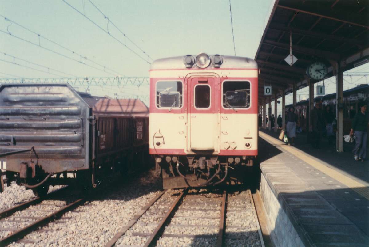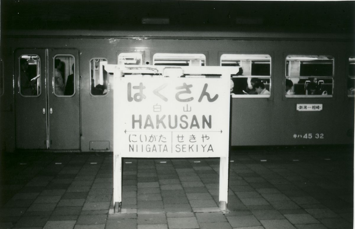漢字 ローマ字 (所在地) ←---→ 燐駅|燐駅 である。 ここにアップするのは、。そのとき、あるいは後日撮った写真である。雪景色のものは、ほとんどが昭和56年冬の撮影である。モノクロは昭和57~58年頃と思う。 ●新潟駅 「鳥居型」がないので割愛。 ●白山駅 」に、後日書く越後西線の駅名標と同じテイストを感じるが、他の平仮名を見ると別。所在地表記もない、オリジナル型。 後ろのキハ45 32は、寒冷地仕様の500番台とともに新潟の顔だった。 白山駅は島式ホームで、駅舎には地下道が通じていた。その、地下道の階段がとても味わい深かったのだが、いま現在はホームともども改築中で、跨線橋が架設されている。白山駅は、高校時代、「汽車通」してた友人をときどき見送りに行った。私は自転車通学だった。 ●関屋駅 窓の外を見れば、まだ貨物輸送をしていた時代。 新潟から内野あたりは当時でも乗客が多く、車内から駅名標を撮るとどうしても人が入ってしまい、思うように撮れなかった。子どもとはいえ、(被写体でもない)人にカメラを向けることには抵抗があった。 ●青山駅 当時は存在しない。 ●小針駅 ●寺尾駅 ●内野駅 ●内野西が丘駅 当時は存在しない。 ●越後赤塚駅 ローマ字表記、「越後」と「赤塚」の間にハイフンが入る。 ここまで(旧)新潟市。 ●越後曽根駅 その向こうの「銀バス」が気になる人もいるかもしれない。 ●巻駅 こちらも古レール。古レールを門型に組み、その上に鉄板をかぶせてある。 ●岩室駅 ●北吉田駅 当時は存在しない。 ●吉田駅 燐駅表示、「いわむろ 」とスペースがあるのが気になる。 昭和50年代の駅名標(越後線)その2に続く。 昭和50年代の駅名標(越後線)その3もあるよ。