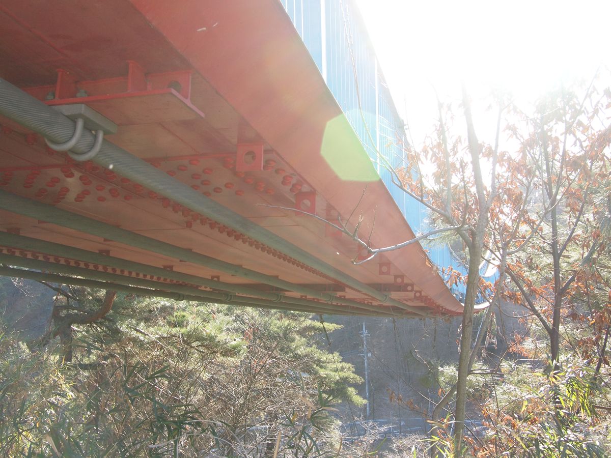 × [PR]上記の広告は3ヶ月以上新規記事投稿のないブログに表示されています。新しい記事を書く事で広告が消えます。 1月10日(月)夜、お台場の東京カルチャーカルチャーで開催されたイベント『スーパーベルズの鉄道ナイト10~鉄道賢人あいのり新年会!「ひたちなか海浜鉄道編」DVD-BOX発売記念!最強アイアンゲスト多数集結!カルカルで2011年の鉄初め!!!』(←長い)に行ってきた。 スーパーベルズのイベントの第10回なのだが、今回は、先日のエントリ【DVD】鉄道6賢人イチ押し最強路線あいのり旅で紹介したDVDの販促イベントということもあり、いつもとは異なる進行となったようだ。ベルズのイベントを見るのは初めてなので、あくまで伝聞。 出演者は、先のエントリをコピペする。上の写真左からの順にした。 ●南田裕介/タモリ倶楽部などでもおなじみのホリプロマネージャー ●野月貴弘/音楽ユニットSUPER BELL"Z(スーパー ベルズ)の中心人物 ●中井精也/「JR時刻表」の表紙写真などでも活躍する鉄道写真家 ●梅原淳/鉄道関連著書多数の鉄道ジャーナリスト ●オオゼキタク/シンガーソングライター ●横見浩彦/JR・私鉄全線全駅下車を成し遂げたトラベルライター 南田さんがお仕事で開演に間に合わなかったため、5人でスタートする。自己紹介などない。いきなり始まる。DVDを見ていることを前提に始まる。あわててタクさんがDVDを見てない人のためにフォローを入れたりしながら、第一部「自分の夢がかなった瞬間」。 私には中井さんの「年に何回か、イメージしているシーンに出会えることがあります」というお話が、とても染み入った。1年中、撮影の現場に立たれている中井さんでも「これ!」というシーンに出会えるのはその程度の回数だということだ。でも、それを確実に作品として仕上げている。本当にすごい。その代表的なものをスライドで何枚か紹介し、そのシーンに出会ったときのエピソードに、会場は飲み込まれてゆく。 私もそれなりに撮影していたほうだと思うが、「これ!」というシーンに出会えたのは何回あっただろうか。いくつか思い出してみる。 中井さんの作品に、日高本線の気動車越しに夕日が沈むというシーンがあった。 中井さんのお話は、とにかく沿線に立っていれば、いつかはいいものを見ることができるよ…というメッセージのように感じた。私は比較的、机上で満足してしまうほうなので、意識して外に出なければと思う。もう写真は撮らなくなったので、自分の目で見ることを大切にしたいと思う。 続いて第2部「女性に鉄道の魅力を『かわいい』『おいしい』で伝える」(だったかな)。女性3人が新たに壇上に上がり、ほとんど理解されないまま進むが、みなさんの「楽しい旅行」プレゼンが的確でおもしろい! そして第3部、トミーテックの鈴木さん、DDFの矢幅さんが登壇し、元日に野月さん・南田さんと「常磐初日の出号」で旅行したときのお話。気の置けない仲間と旅するとこんなに楽しいのか!ということだ。私はひとりでしか行かないので、本当に羨ましかった。 そんなこんなであっという間に5時間終了。こうしたイベントに来ると、本当に人の輪が広がるから嬉しい。次は2月6日(日)の『鉄イッターサミット~鉄道×twitter・夢のコラボイベント!』に行きます! PR 宇都宮に友人たちと餃子を食べに出かけた折、腹ごなしに八幡山公園まで歩いた。そこに「アドベンチャーブリッジ」「アドベンチャーU」なる、そこはかとなく興味が引かれる名称が案内標識に記載されていた。どうやら吊橋らしいのだが、行ってみて驚いた。主索で床版を吊る通常の吊橋ではなく、主索に直接床版を載せる鋼吊床版橋であった。 親柱を見ると、変な像がある? 前方向かって左に銘板がある。 ●右 アドベンチャーブリッジ 1998年8月 宇都宮市 小規模吊橋指針・同解説(1984年) 使用鋼材:SS400 製作:川田工業株式会社 ●左 塗装記録表 塗装年月 1998年9月 塗装会社 下塗 川田工業(株) 中塗 川田工業(株) 上塗 <同> 塗装材料 下塗 鉛系さび止めペイント 中塗 長油性フタル酸樹脂塗料 上塗 <同> 塗料製造会社 下塗 日本ペイント(株) 中塗 日本ペイント(株) 上塗 <同> 渡る。吊橋だからといって揺れることはない。手すりは、その接合部を見るとほとんど動くことを許容しないようになっている。 そのまま対岸まで行き、振り返る。 そのまま後ずさりし、対岸側の親柱を見ると、やはり変なものがいる。 左。 右。 ツイッターでは随時写真をアップしていたけれど、宇都宮は変なものが多い。ワンダーJAPANに「宇都宮ワンダー」とか言って特集してほしいくらいだ。 ここまで来ても、ケーブルは見ていない。幸い、真下にもぐれる場所があった。 この角度で見ると、耐風索は見えなくとも、そこに至るハンガー(床版と耐風索を結ぶケーブル)はわかるだろう。 アンカー。 ググると、現地には説明版があるそうだが、私は気がつかなかった。まあ、節穴だから仕方あるまい。 川田工業による技術解説はこちら。 またはこちら