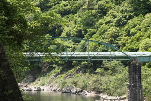 神戸市に「神戸水道」という上水道用の導水ルートがある。水源は千苅(せんがり)ダム。武庫川の左岸川の支流、波豆川を堰き止めたダムで、そこから水路隧道で南東に向かう。途中何ヶ所か地上に顔を出して谷を水道橋で越え、また山にもぐっていく。やがて宝塚市生瀬付近で武庫川を渡り、上ヶ原浄水場(下記地図の緑のアイコン))に至るというルートだ。