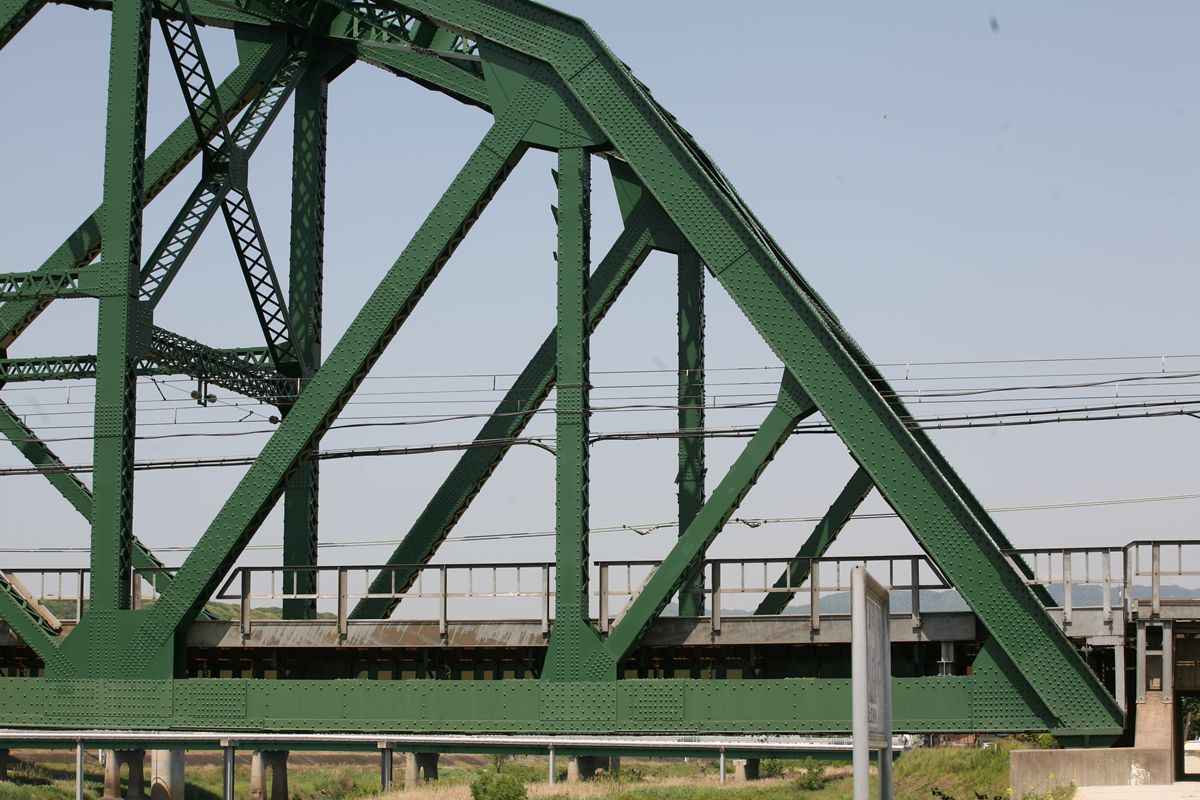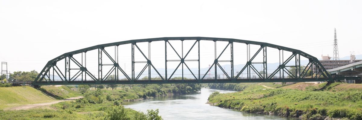 ここで「併用橋?」と思った方はするどい。(鉄道・道路)併用橋とは、鉄道と道路がともに同じ桁を走行する橋である。有名なものでは東京の勝鬨橋(都電)、愛知の犬山橋(名鉄)、岐阜の忠節橋(名鉄、右写真、