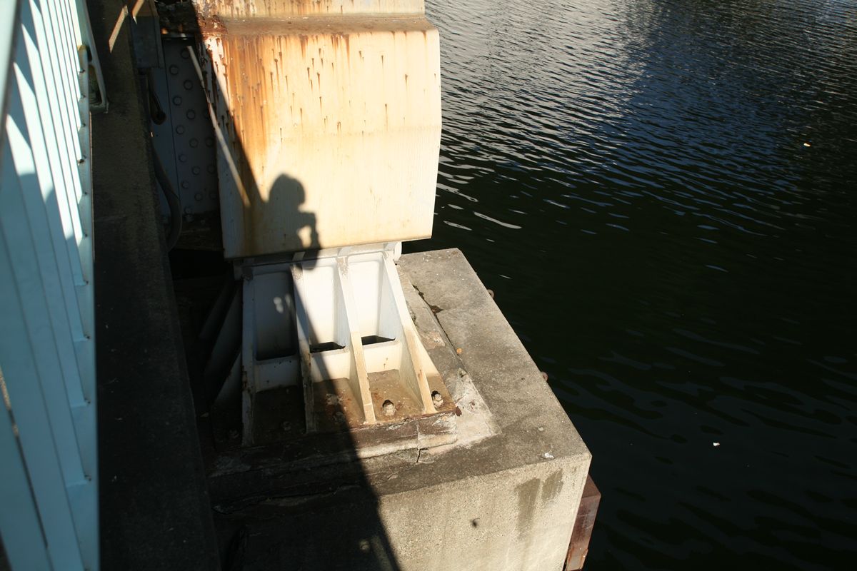 東京都港区建造 鋼示(1984)一等橋 製作 横河橋梁製作所 千葉工場 材質 ●●●●●、SS41 支承には「横長の楕円形、中に縦三本線」の陽刻があるのだが、メーカーはわからない。いや、社団法人日本支承協会のサイトも見たのだが、わからなかった。毒を食らわば皿まで。支承もコレクションしとかないといけないかもしれない。 ●西側のビームとその橋脚 基礎工 場所打コンクリート杭φ150cm L=9.5m 5本