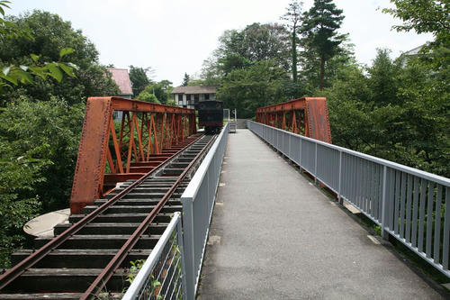 × [PR]上記の広告は3ヶ月以上新規記事投稿のないブログに表示されています。新しい記事を書く事で広告が消えます。 のちに列車重量の増大等とあいまって、1915年に3連が御殿場線(当時は東海道線)の第2酒匂川橋梁下り線に、3連が上り線に転用された。『明治時代に製作された鉄道トラス橋の歴史と現状第2報 英国系トラスその2』(西野保行・小西純一・淵上龍雄)によれば、下り線に「六郷川より1連」という注釈がついているが、おなじハミルトン製の複線桁が3連あった現地のうち、1連だけが六郷川で、残り2連の素性が不明、ということはあるまい。おそらく、3連とも転用桁だったのだといまは思っている。 第二次世界大戦中、御殿場線は単線化されたが、第2酒匂川橋梁のうち残されたのは下り線で、上り線は1944年に撤去された。行方は知らない。下り線も、1965年に現在の桁に架け替えられた。御殿場線の橋梁群については経緯を追いづらいので、過去に書いた記事を参照していただきたい。 桁の話に戻る。上の写真のように、複線桁のうち片側にレールが敷かれ、片側は歩道になっている。レールの上には尾西鉄道1号機関車が保存してある。こちら側には銘板があるが、複製品だとどこかで読んだ記憶がある。 この桁の最大の特徴は、レールが敷かれているということと、そこに縦枕木が再現されていることだろう。 縦枕木とは、レールの真下にレールと並行して敷くもので、橋全体の構造として、両サイドのトラス桁の下弦に横桁を渡し、その上に長手方向に縦枕木を敷き、その上にレールを敷くことになる。 このような感じになる。 横桁は、上の写真でわかるとおり、魚腹型だ。 また、レールは一部に双頭レールを使用している。 そう思いながら見ていて、ふと気がついた。横桁の腹材は帯板1枚ではなく、継ぎ足されている! そして、道路側を機関車側から眺めると、なぜか1本だけ、この継ぎ足しがなされていない横桁がある! いままでレポートしてきた横桁のうち、原型をとどめるものでも、継ぎ足されたものはない。これは、複線桁で幅が広かったためにこのようにせざるを得なかったのだろうか。製造する部材の寸法の制限によるものなら、横桁中央部で接合してもよさそうな気もするが、この場所ならば応力が小さくなる、などといった効用があるのかもしれない。 トラスの端部、端柱の上のピン部分はこうだ。 こうしてみてきたが、実はトラス桁だけでなく、鈑桁も保存されている。 縦枕木は、敷設も、保存も手間がかかることだと思う。それでもこの形として見ることができるのは幸せだ。明治村は、平気で1日見学できる。また機会を設けて行ってみたい。 PR