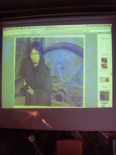 最後に、終了後も会場にいた人が誤解をしているといけないので、説明したいことがひとつある。この写真だ。 中筋さんは、かつて『アウトライダー』の編集者であり、私が会社に入った頃には独立してカメラマンになっていた。1980年代か1990年代前半に、ツテをたどって堀淳一氏に会いに行ったような方であり、廃墟の先駆者の一人である。1990年代後半から『廃墟本』はじめさまざまな本を出されており(いまamazonで見えるのは、リニューアル版の別商品である)、いまでもロードムービーさながらにクルマで適当に走りながら被写体を見つけ、撮影してはまた走るというようなやり方を、1週間以上続けるような方である。一昨年に『廃墟チェルノブイリ』という、これまたものすごい写真集をものしたが、これも「チェルノブイリを撮りたい」という執念から、現地への立ち入りを手配し、単身乗り込んで、ガイガーカウンター片手に撮影に臨んだような方だ。 そんな中筋さんの写真が画面に出ていたので、私は「中筋さんも、丸田さんの写真を盗作したのだろうか?」と思ってしまった。中筋さんは、上述のとおり編集者からカメラマンになった方であり、誰かの弟子などではない。もし師に相当する方がいたとしても、時代的に小林氏では絶対にない。その頃の小林氏は、バブル的カタカナの物撮り風の作風だったのだ。 擁護が長くなったが、この中筋さんについては、先のとおり、常人には発想できない行為を多々見ており、くだらない盗作のような企てをしたり、それを隠したりするような方ではない。 ではなぜこの写真が大写しになっていたのか。それは、「この写真のアングル」が極めて丸田さんの作品に似ているのだ。中筋さんは被写体であり、撮影者ではない。つまり、この近影を写した人が……というニュアンスで大写しにされていたのだ。私はホッとした。 (2010.8.12一部修正) PR
