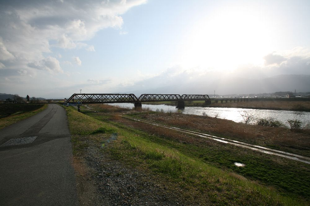PR 英国系ダブルワーレントラスのひとつ、山形鉄道フラワー長井線(旧国鉄・JR長井線)の最上川橋梁である。終点の荒砥駅のすぐ手前にかかる、3連のトラス桁と12連(多分。ここらへんの調査漏れが情けない)の鈑桁からなる、長大な橋である。このトラス橋も、横桁が下弦に載るというものなので、参考までに書く。 製造はパテントシャフト&アクスルトゥリー、現設計はチャールズ・ポーナル(建築師長)である。1885年頃にこのダブルワーレントラスが登場するまでは、国内で使用される鉄道用鉄橋は100フィートが最大で、それはこの考察の原点であるポニーワーレントラス(設計はジョン・イングランド/技師長;どの部局での称号なのかは不明だが、工部省か)であった。以後、約20年の間にダブルワーレントラスは112連が架設され、初期の錬鉄製が22連4橋あった。製造の経緯からして、おそらくすべてがパテントシャフト製である。 ・利根川橋梁 錬鉄3連 1919年撤去→水戸線鬼怒川橋梁に1連を、稲沢操車場の跨線橋に2連を転用 ・揖斐川橋梁 錬鉄5連 1913年用途廃止(道路橋として現存) ・長良川橋梁 錬鉄5連 1914年撤去 ・木曽川橋梁 錬鉄9連 1914年2連、1919年7連撤去 最上川橋梁はどの橋梁の転用かというと、歴史的鋼橋集覧では木曽川橋梁の転用と断定している。しかし、その断定のたる『日本鉄道請負業史』を参考とした論文『明治時代に製作された鉄道トラス橋の歴史と現状(第1報)200フィートダブルワーレントラスを中心として』(小西純一、西野保行、渕上龍雄、1985年)には「木曽川または長良川より」とある。どちらが正しいかはまったく不明である。 いろいろ時間が押しているので、これにて一時中断。写真でお茶を濁す。
