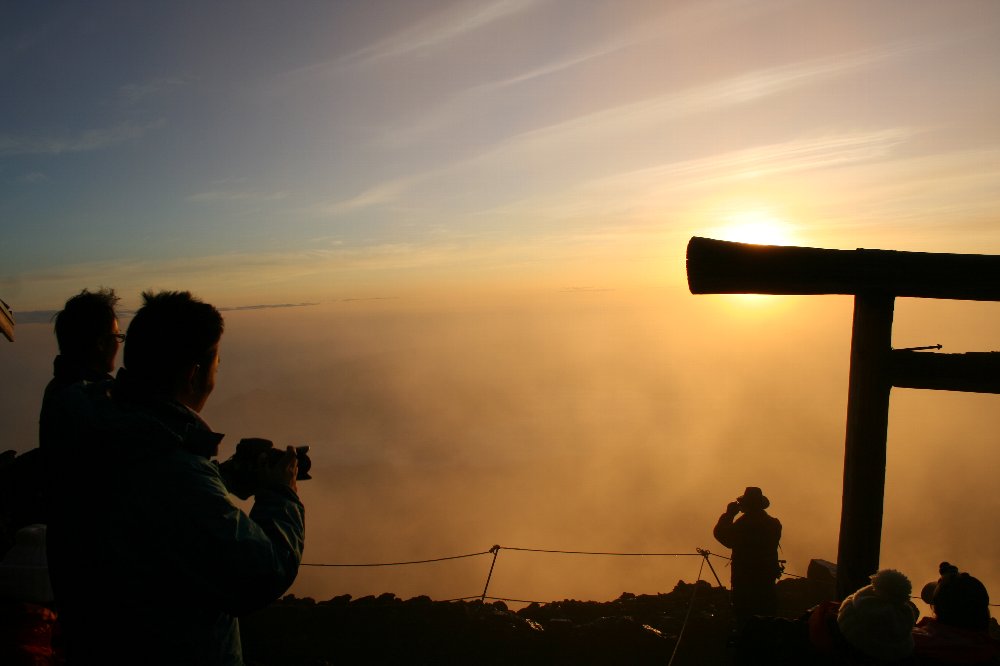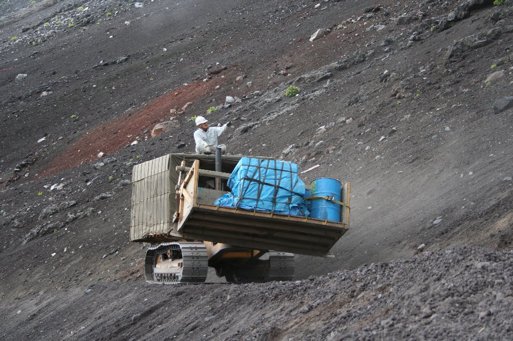 富士山だけはまさか登るまい、と思っていた。 それが、ふとしたタイミングで登ることになった。 山を知っている者には予想外の連続。 いや、正確には巷間喧伝されていることから事前に「予想」していたものの、 それがその通りであることを確認して驚くことの連続だった。 とにかく山頂でご来光を迎えた。 ただし、私が過去に見た数十回のご来光のうち、 どれくらいの順位かといえば、、、後半だろう。 行程自体は、思っていたよりもイージーだった。 天候、気温、いろいろな要因があるだろうが、 途中でツライ、イヤだ、もうへたり込みたい、ということは皆無だった。 もっともっと体力が有り余っていた高校生の頃には もっとつらい思い出がある。 しかし、いま考えると、それは「つらい」と思い込んでる思い出であって、 同じことを体力の数段落ちたいま実行したとしても、当時ほどには苦痛に感じないだろう。 つまり、気の持ちようである。 下山道は「ブル道」である。 3回、すれ違った。 思ったよりも荷は少ない。 屋根上に人が座っているのは、 運転席から前が見えないためである。 |