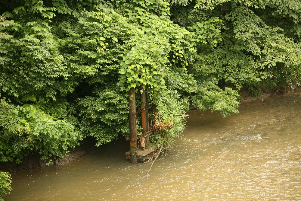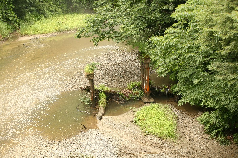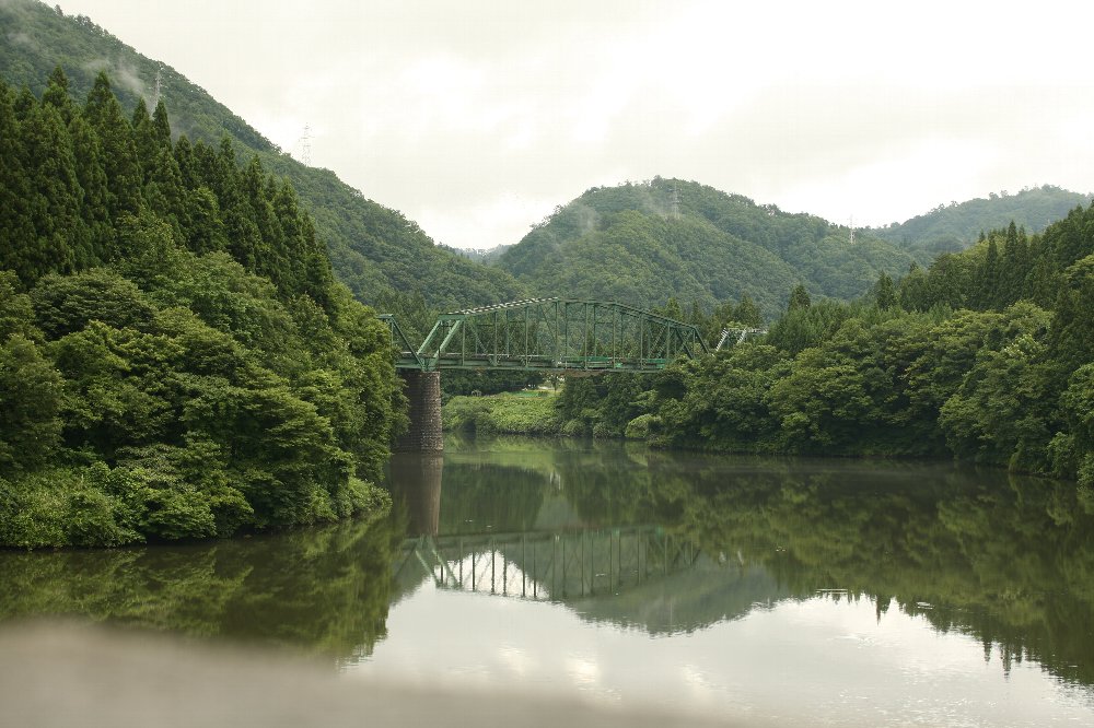 ↓ BNSF鉄道 ↓ BN(バーリントン・ノーザン鉄道) ↓ GN(グレート・ノーザン鉄道) ↓ NP(ノーザン・パシフィック鉄道) ↓ ノーザン・パシフィック・コーナー ↓ ジェームズ・ジェローム・ヒル ↓ J・P・モルガン ↓ USスチール ↓ アメリカン・ブリッジ こう至る過程で、いろいろ寄り道をした。 モルガンに関することがいちばん時間がかかった。 元々金融だの経済だのを勉強したことはない上に 書物に書かれているのはアメリカとイギリスの金融界の常識である。 日本に置き換えて考えることのできる話ではない。 アメリカン・ブリッジについては、いまなお理解していない部分が多い。 公式サイトは基本的に「いま」のことばかり書いてあるし、 こちらの関心はとっくに終わってしまった技術、ピントラスである。 古い土木学会誌などのほうが役に立ったりするが、 いかんせん読みにくい。 日本における鋼橋史とその系譜、みたいな書物がないかしらん? 磐越西線徳沢橋梁。 下りでいうと、徳沢駅を出てすぐに阿賀野川を斜めに渡る橋梁である。 両岸の木立に囲まれ、端部の短いプラットトラスを全貌できない。 釜ノ脇橋梁とともに、日本初のカンチレバー工法にて架設された橋梁である。 (土木図書館の工学会誌参照) これまた古さをまったく感じさせない、落ち着いたたたずまいを見せる。 いかにもアイバー、という形のアイバーが中央パネル下部にしかなく、 また副材(ここでは斜材)が多数備えられているため、 ピントラスが持つ華奢な印象がないのかもしれない。 確か、R359が鬼光頭川を渡る橋から撮影したと思う。 同じ場所には、こんなものもあった。 振り返っての撮影だったと思う。 旧橋だろうか。それとも水道橋かなにかの遺構だろうか。 昭和51年度撮影の航空写真でもわからない。 国土変遷アーカイブでも、もちろんわからない。 下記はhttp://w3land.mlit.go.jp/Air/photo400/76/cto-76-26/c1/cto-76-26_c1_10.jpgをトリミング。 写真の左下の橋の左下に、上記橋脚があるはずである。