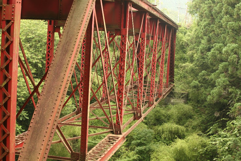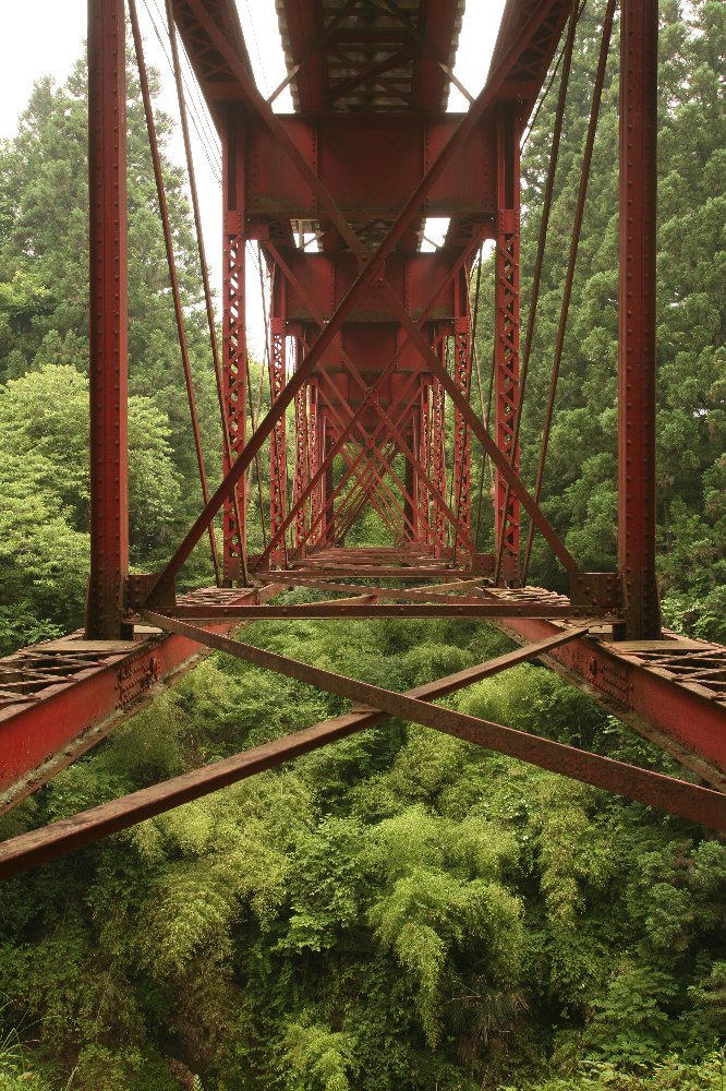 これを見ていたら、杖持った地元のおじいさんが来て、 橋のたもとの家の飼い犬をビシッ! と叩いた。 「こいつ、最初は俺に吠えやがって、叩いたら今度はエサをねだってきやがる」 また何度か小突いた。 他人が飼うペットにそういうことをする人がいることが、信じられなかった。 ということを書きたいのではなかった。 そのおじさんまでもが、橋梁を眺めていた私に 「これはアメリカから持ってきた橋なんだぞ」 と言っていた。 だからこそ見に行ったわけですが、 銘板や説明看板などはなかったと思う。 そんな、他人の飼い犬を小突くようなおじいさんまでが知ってる橋梁の出自。 なんだか、すごい。
