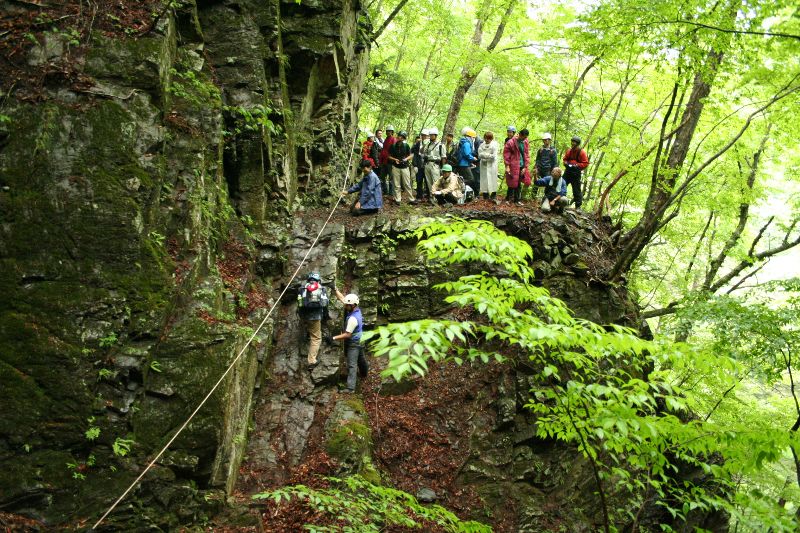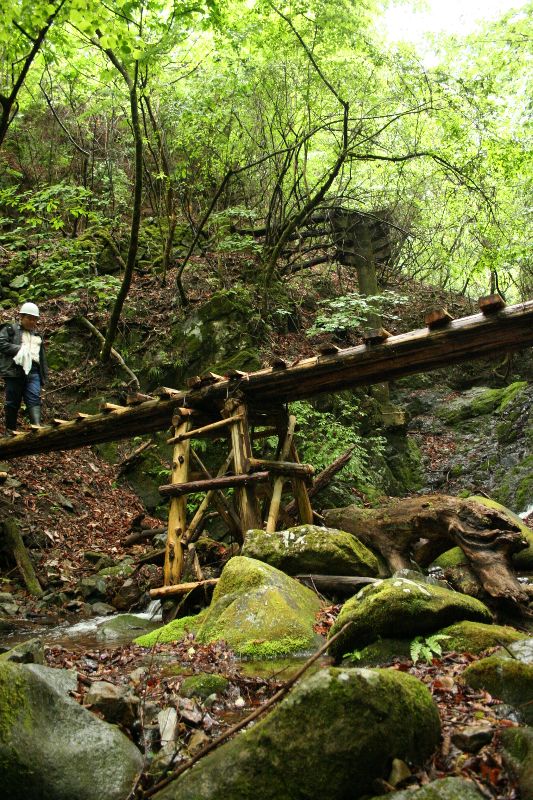 行ってきました、黒川通り。 参加者たちは私より若い人が多いようで 初対面同士、廃道話で盛り上がっているようだった。 生憎の天気が予想されたが、多少ぱらつく程度、 いっとき、日が差すことすらあった。 そんな天気と相まって、とにかく「気持ちいい」道である。 ただ、とにかく露出があがらない。 雨天その他を考えてキスデジにしたが、 いまピントの合いがよくないので・・・。 バスで泉水谷・三条橋まで乗り付け、すぐに廃道に入る。 ちょっと荒れた林道、という程度で 人が入っている様子がある。 新・黒川橋。 向こうに見えるのは旧道の橋台と橋脚だが主桁はない。 橋台から橋脚の間、木橋の桁らしきものが残る。 ゆうれい草(銀竜草)。 別の場所にもいた。 正面から写真を撮らなかったことを悔やむ。 危険が生じる可能性がある場所には 主催者がロープを用意。 使用後、すぐに回収する。 オブザーバーの方がサポートしてくださる。 このあたりから雨脚が強くなってきたので カッパの下を着用。 そんなこんなで藤川橋へ。 そこからR411を上り、SK落合キャンプ場からバスに乗り、一路都内へ。 参加された皆さん、お疲れさまでした。 主催者およびヨッキれんさん+白仮面さん、ありがとうございました。