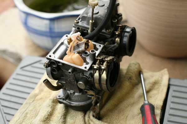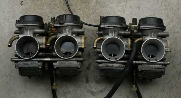 考えられるのは、 (1)キャブの始動に関する部分の不調 (2)イグニッションの劣化で火花が弱くなっている のどちらか。 (1)の対策として、スターターエアジェットの清掃などをしたが、 一向に改善しないため、(2)を疑い出す。 どちらも一気にやってしまおうと思い、 キャブとイグニッションを交換することにした。 まず、部品取り車からキャブをはぎ取り、移植。 左が約8万kmの従来品、右が約4万kmの部品取り車のもの。 ヤレ方は同じくらいである。 部品取り車は7~8年は不動状態であるため、 一応チェックしてみた。 キレイである。 余計なことはせずに、そのまま組み付けた。 なお、ニードルのクリップは、以前と同じく2段目に変更した。